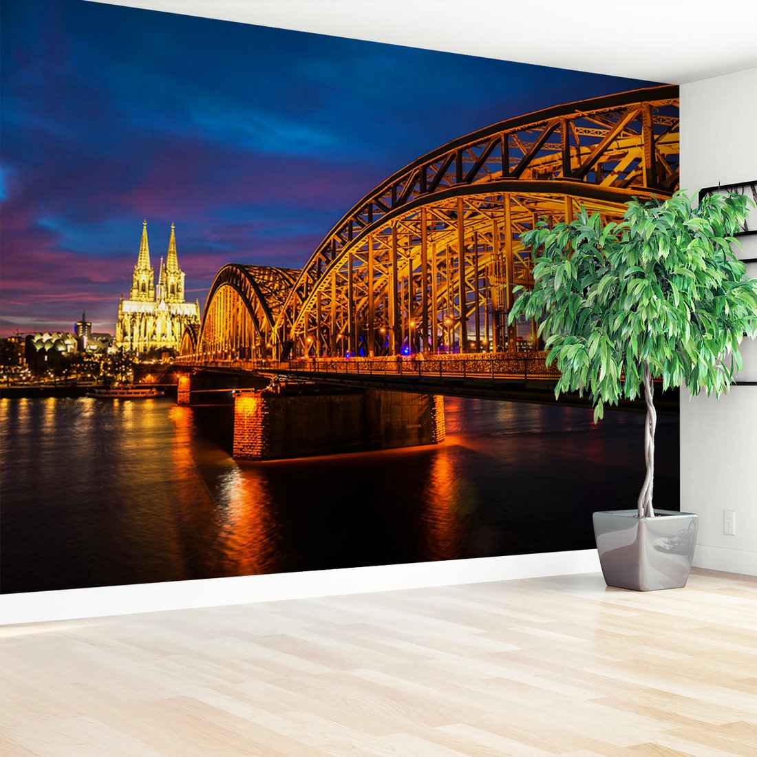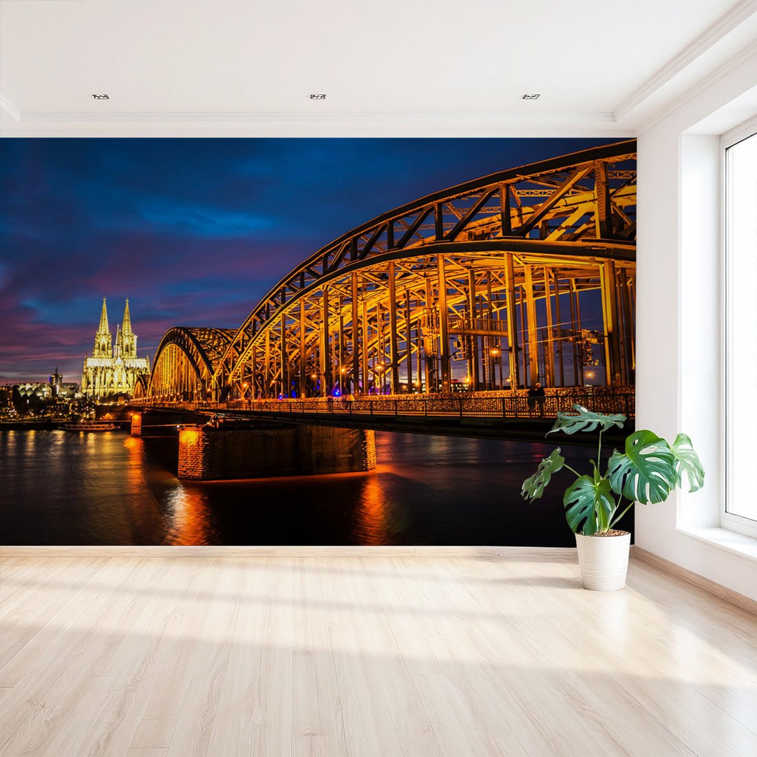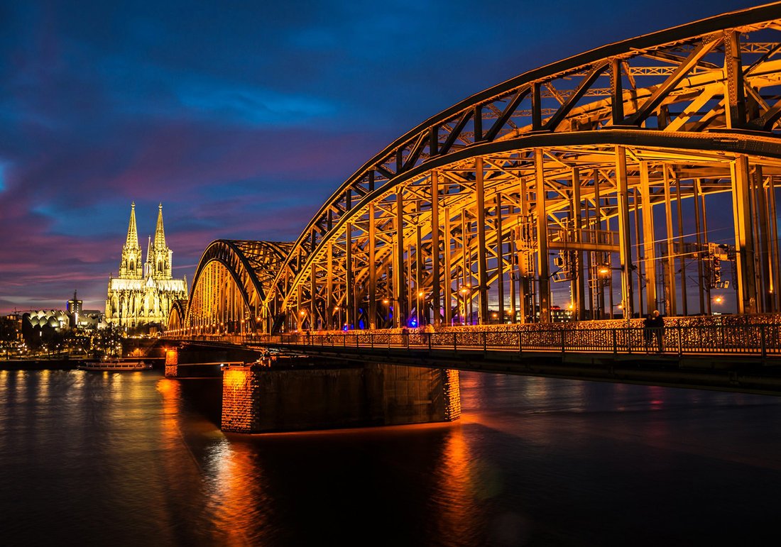 Nadaj swojemu wnętrzu unikalny charakter i głębię dzięki naszej fototapecie z motywem most, Kolonia, noc. Ta imponująca dekoracja ścienna to połączenie nowoczesnego designu i zapierającego dech w piersiach motywu, które całkowicie odmieni Twoje pomieszczenie