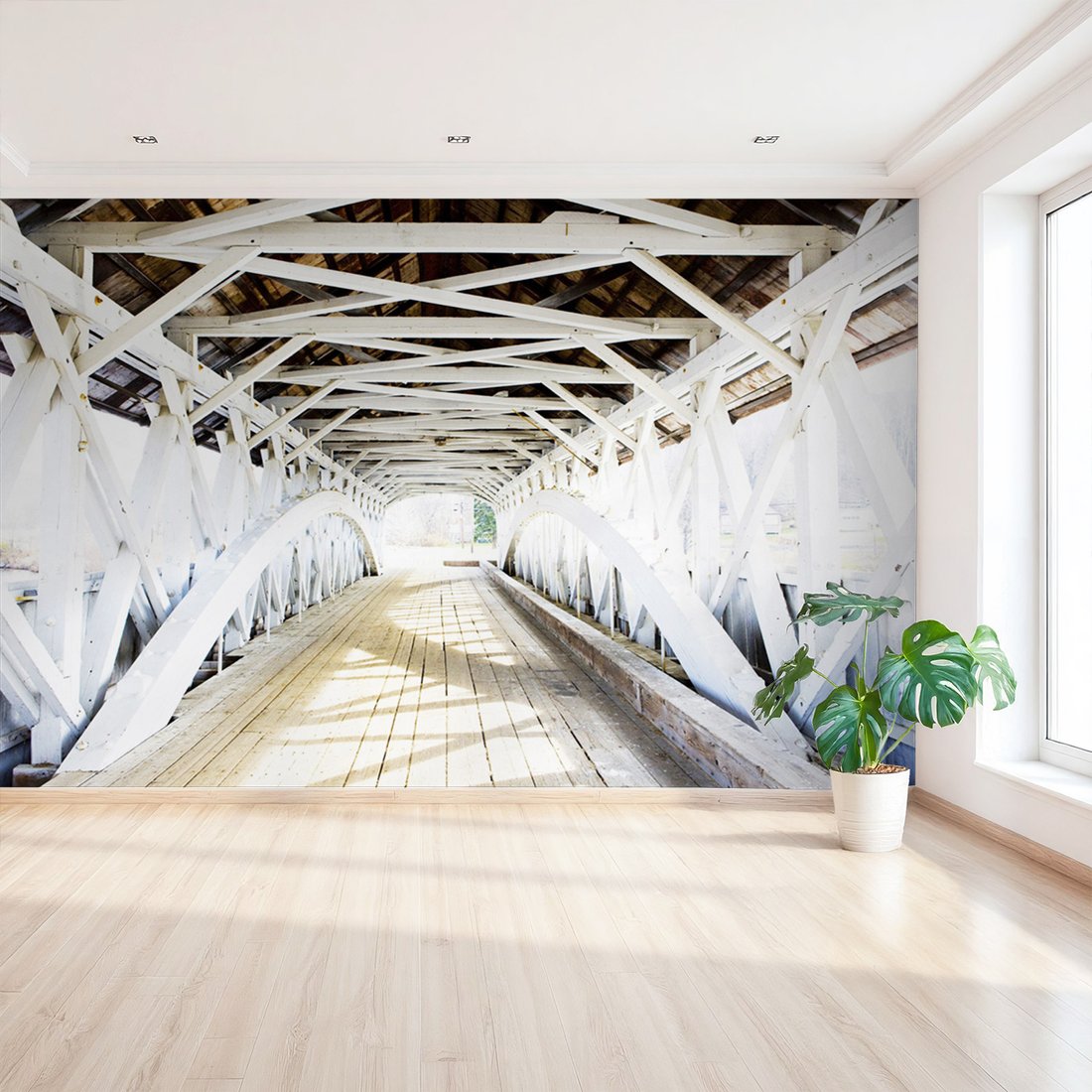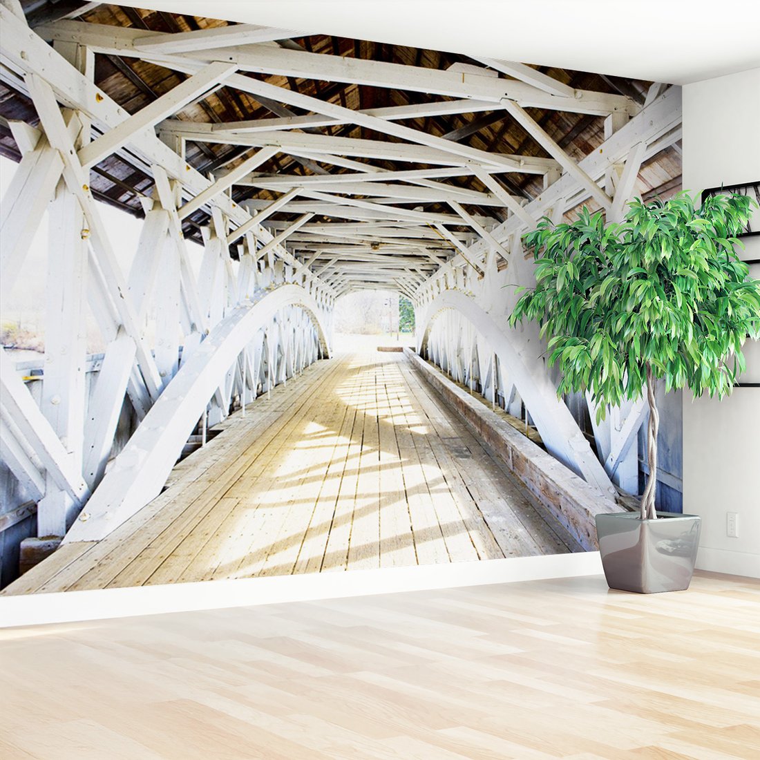 Nadaj swojemu wnętrzu unikalny charakter i głębię dzięki naszej fototapecie z motywem most kryty, drewno, konstrukcja. Ta imponująca dekoracja ścienna to połączenie nowoczesnego designu i zapierającego dech w piersiach motywu, które całkowicie odmieni Twoje pomieszczenie