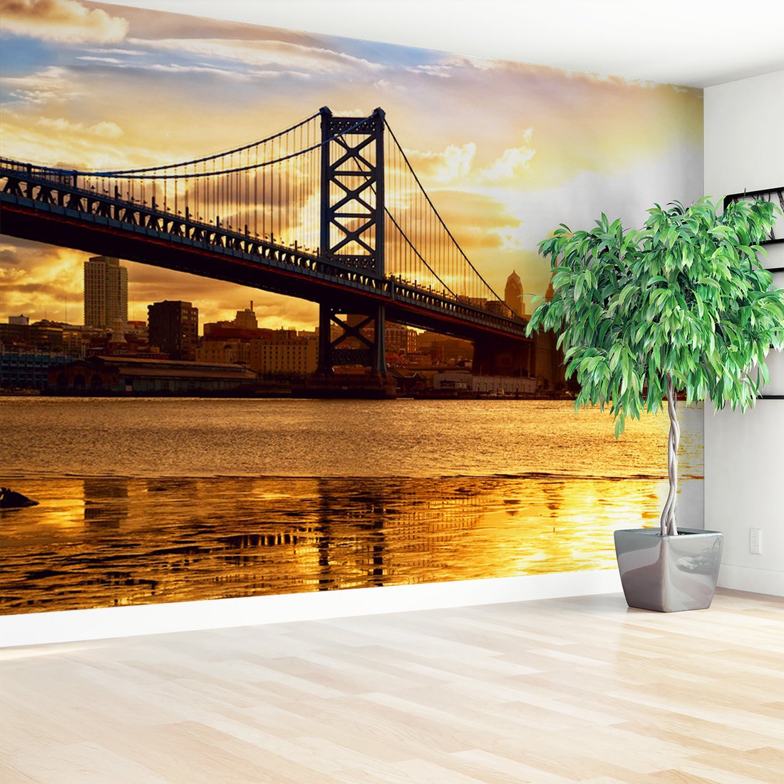Nadaj swojemu wnętrzu unikalny charakter i głębię dzięki naszej fototapecie z motywem most, miasto, rzeka. Ta imponująca dekoracja ścienna to połączenie nowoczesnego designu i zapierającego dech w piersiach motywu, które całkowicie odmieni Twoje pomieszczenie