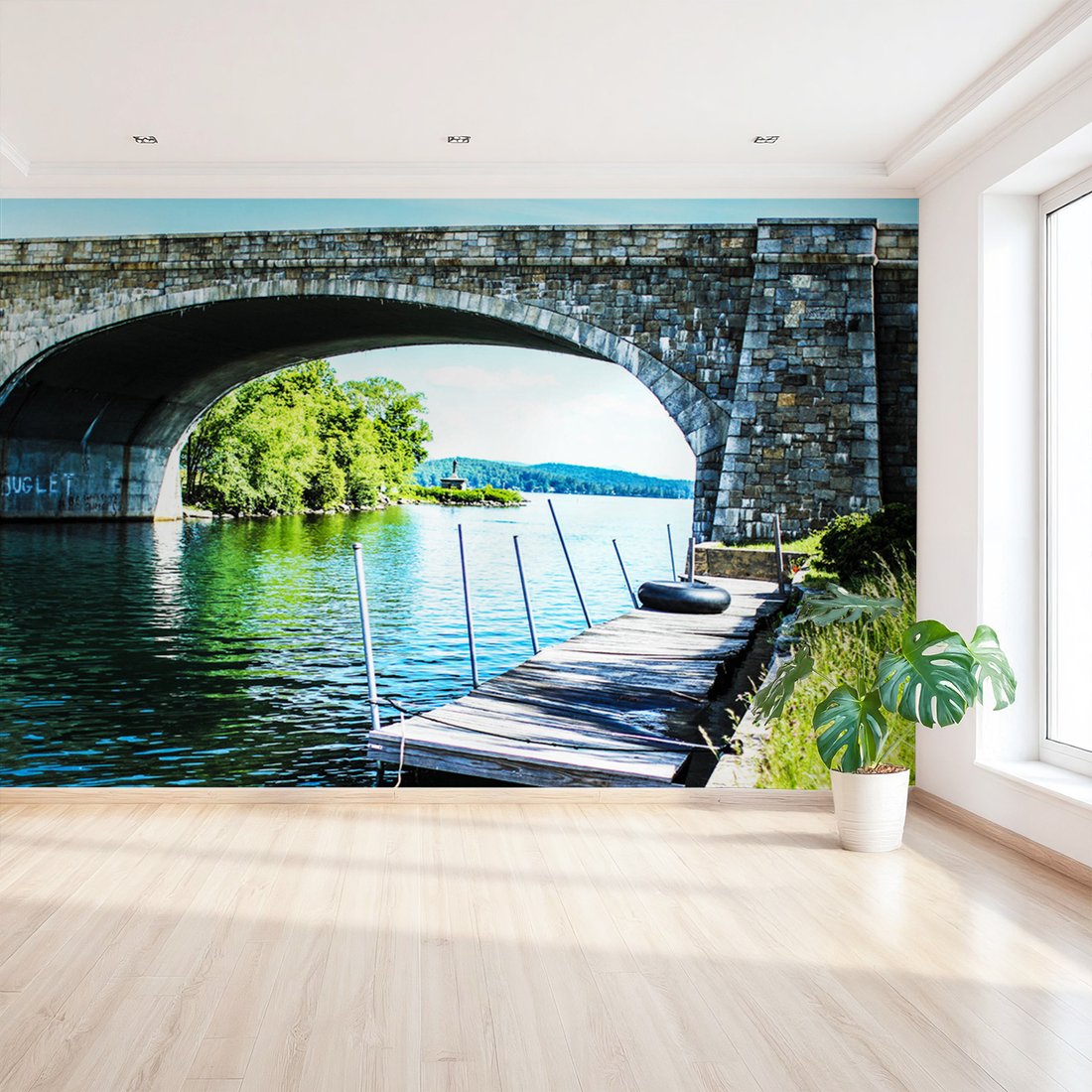 Nadaj swojemu wnętrzu unikalny charakter i głębię dzięki naszej fototapecie z motywem most, woda, krajobraz. Ta imponująca dekoracja ścienna to połączenie nowoczesnego designu i zapierającego dech w piersiach motywu, które całkowicie odmieni Twoje pomieszczenie