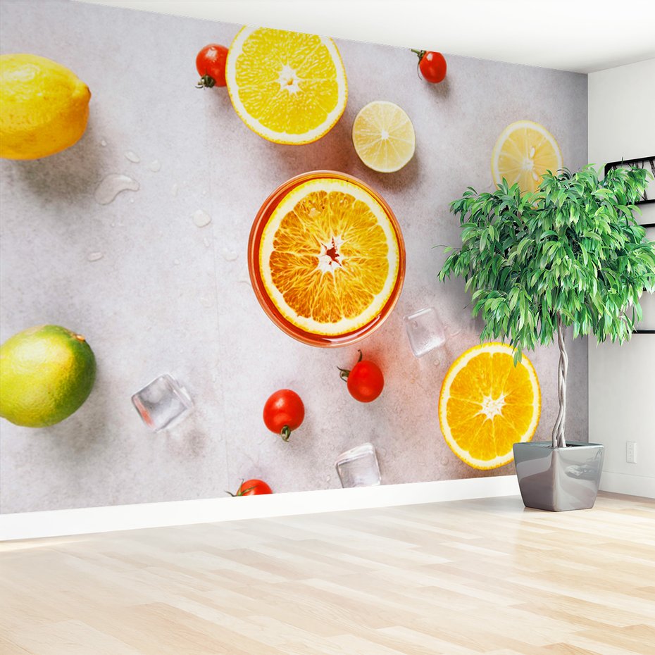 Nadaj swojemu wnętrzu unikalny charakter i głębię dzięki naszej fototapecie z motywem owoce, cytrusy, napój. Ta imponująca dekoracja ścienna to połączenie nowoczesnego designu i zapierającego dech w piersiach motywu, które całkowicie odmieni Twoje pomieszczenie