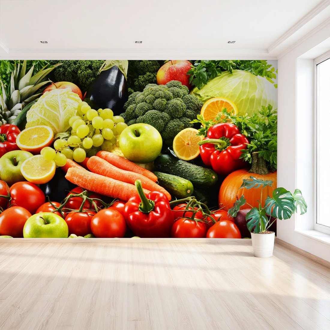 Nadaj swojemu wnętrzu unikalny charakter i głębię dzięki naszej fototapecie z motywem owoce, warzywa, zdrowie. Ta imponująca dekoracja ścienna to połączenie nowoczesnego designu i zapierającego dech w piersiach motywu, które całkowicie odmieni Twoje pomieszczenie