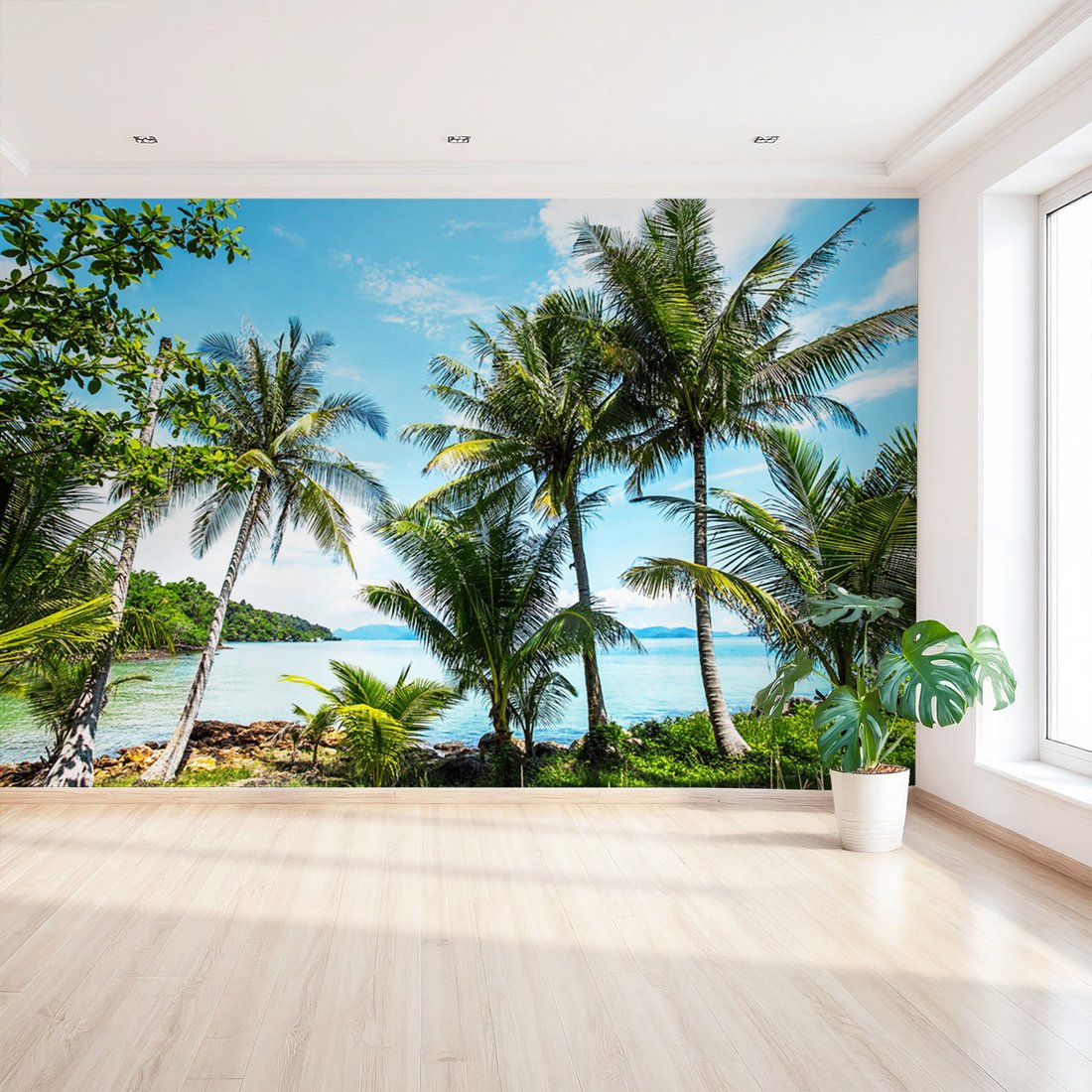 Nadaj swojemu wnętrzu unikalny charakter i głębię dzięki naszej fototapecie z motywem palmy, morze, krajobraz. Ta imponująca dekoracja ścienna to połączenie nowoczesnego designu i zapierającego dech w piersiach motywu, które całkowicie odmieni Twoje pomieszczenie
