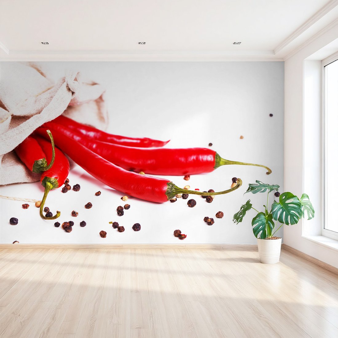 Nadaj swojemu wnętrzu unikalny charakter i głębię dzięki naszej fototapecie z motywem papryka chili, przyprawy, ostry. Ta imponująca dekoracja ścienna to połączenie nowoczesnego designu i zapierającego dech w piersiach motywu, które całkowicie odmieni Twoje pomieszczenie