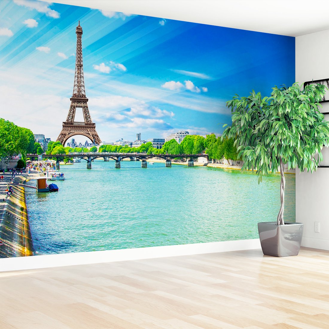 Nadaj swojemu wnętrzu unikalny charakter i głębię dzięki naszej fototapecie z motywem Paryż, Wieża Eiffla, sekwana. Ta imponująca dekoracja ścienna to połączenie nowoczesnego designu i zapierającego dech w piersiach motywu, które całkowicie odmieni Twoje pomieszczenie