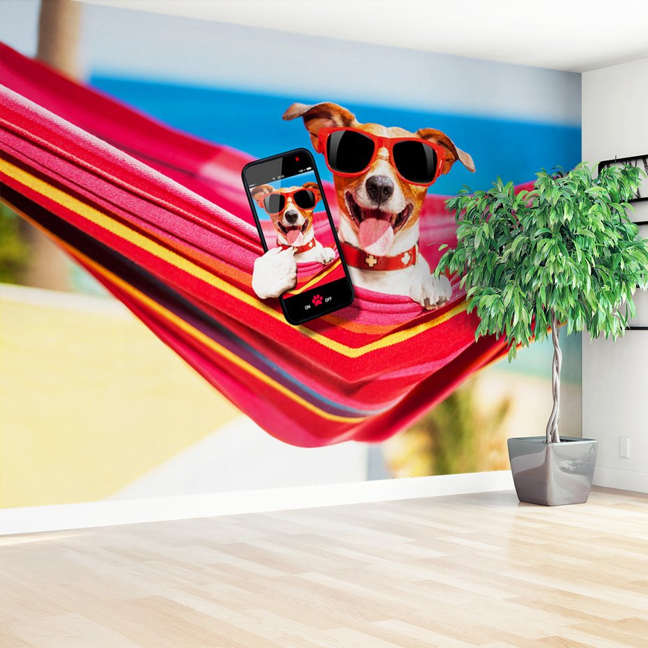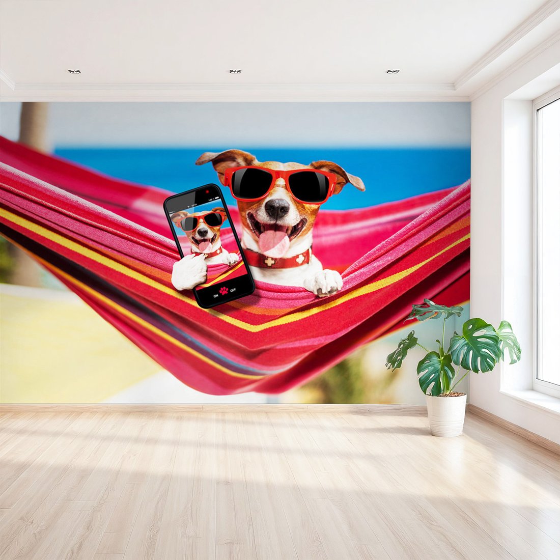 Nadaj swojemu wnętrzu unikalny charakter i głębię dzięki naszej fototapecie z motywem pies, hamak, okulary. Ta imponująca dekoracja ścienna to połączenie nowoczesnego designu i zapierającego dech w piersiach motywu, które całkowicie odmieni Twoje pomieszczenie