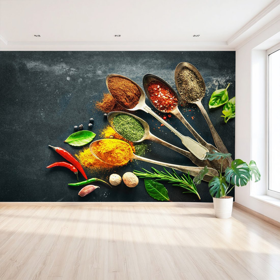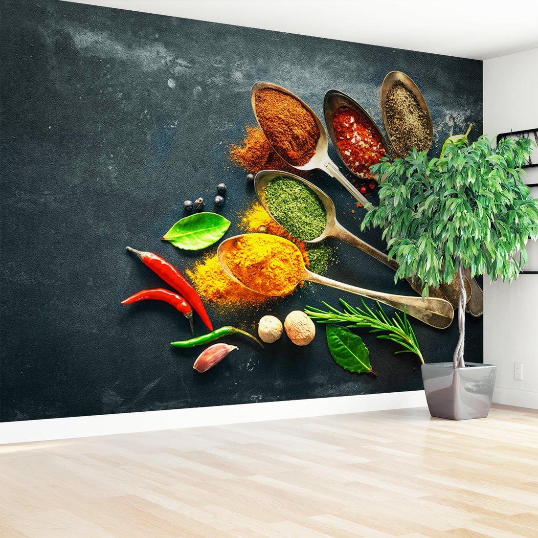 Nadaj swojemu wnętrzu unikalny charakter i głębię dzięki naszej fototapecie z motywem przyprawy, jedzenie, łyżki. Ta imponująca dekoracja ścienna to połączenie nowoczesnego designu i zapierającego dech w piersiach motywu, które całkowicie odmieni Twoje pomieszczenie