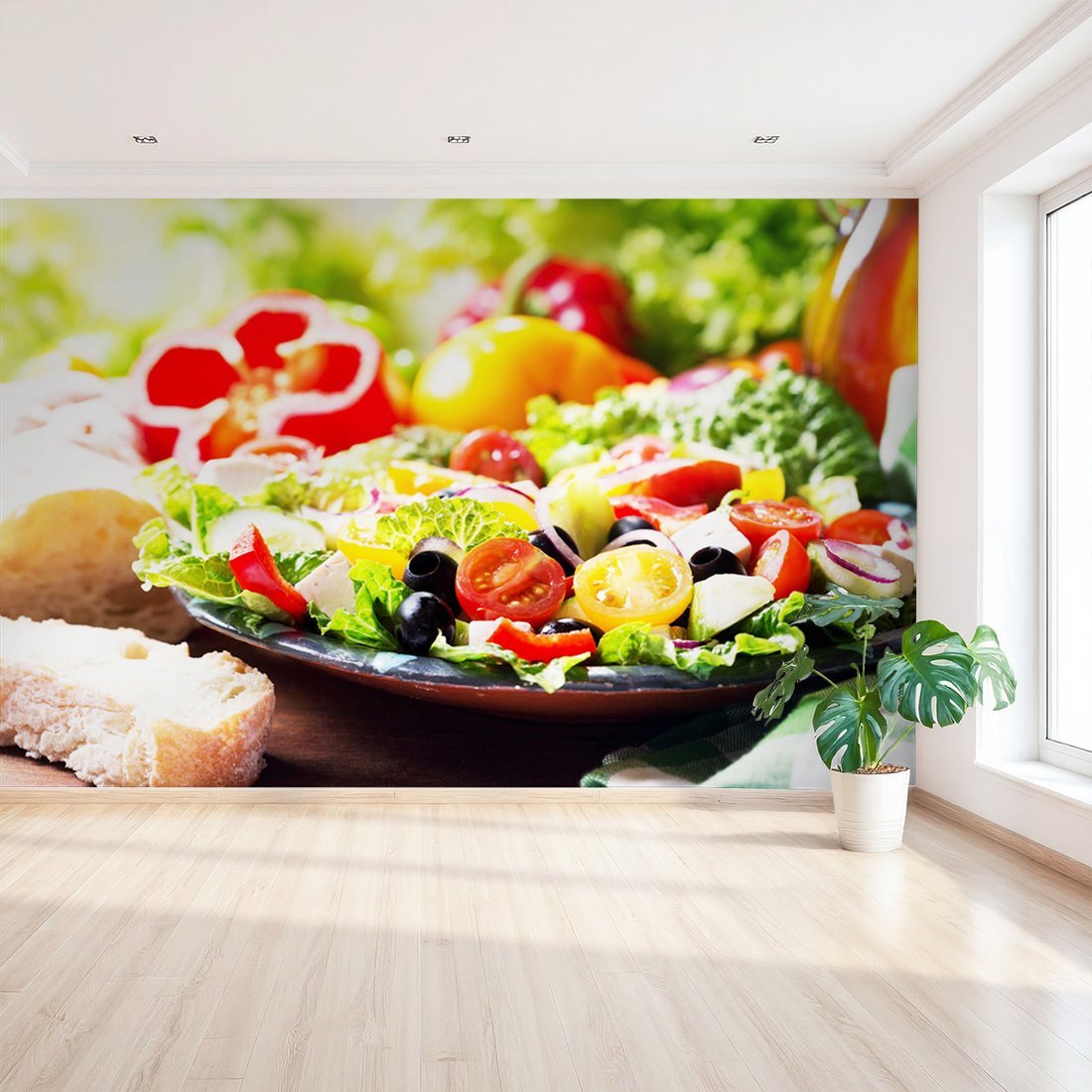 Nadaj swojemu wnętrzu unikalny charakter i głębię dzięki naszej fototapecie z motywem sałatka, warzywa, jedzenie. Ta imponująca dekoracja ścienna to połączenie nowoczesnego designu i zapierającego dech w piersiach motywu, które całkowicie odmieni Twoje pomieszczenie