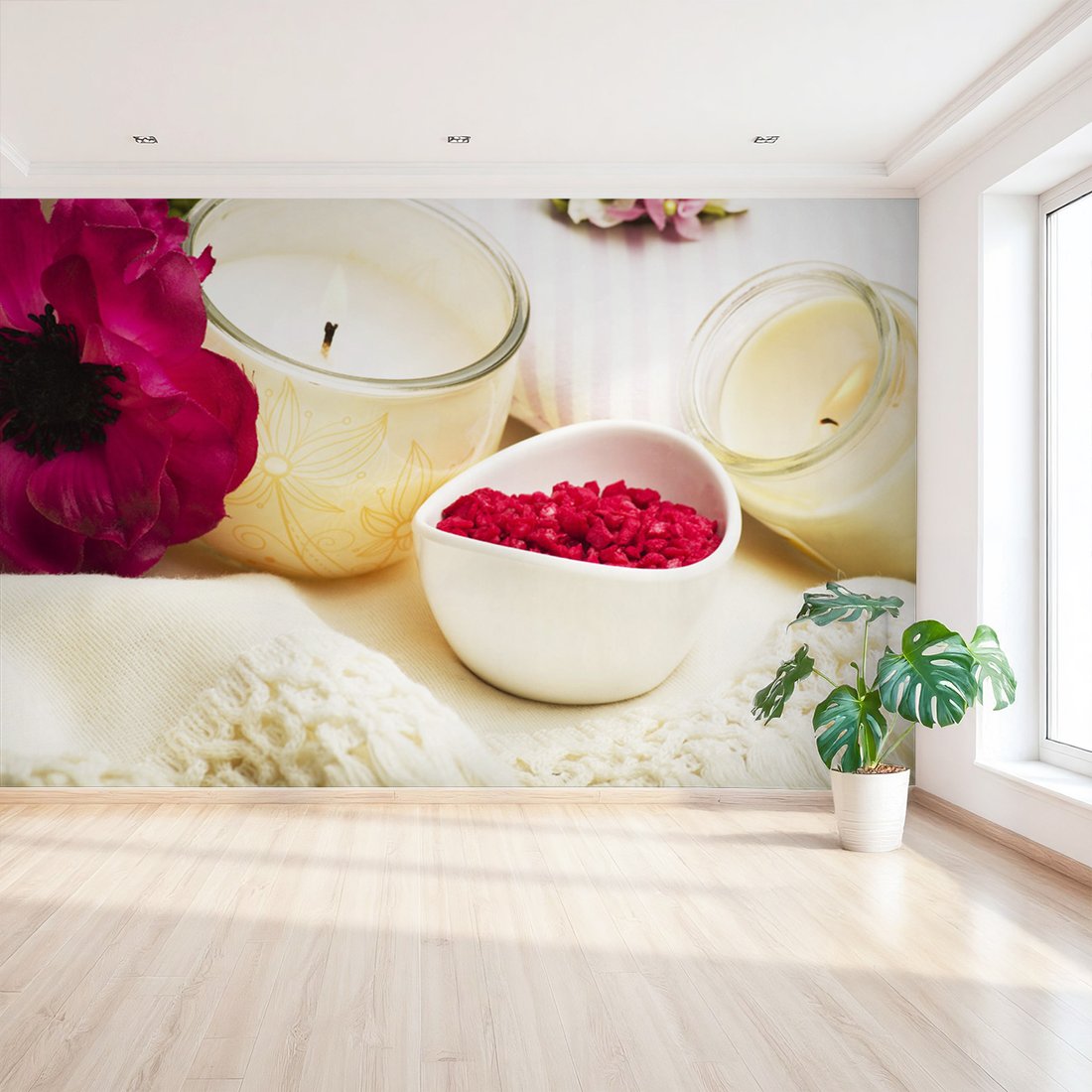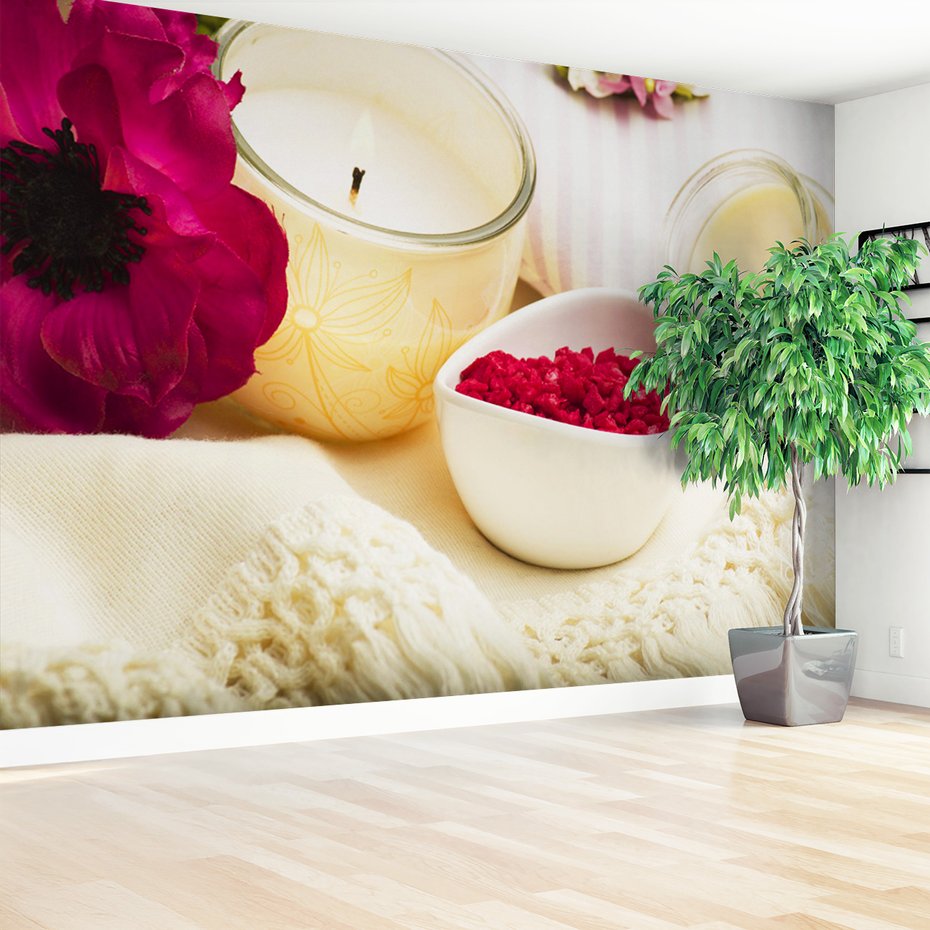 Nadaj swojemu wnętrzu unikalny charakter i głębię dzięki naszej fototapecie z motywem świece, kwiat, relaks. Ta imponująca dekoracja ścienna to połączenie nowoczesnego designu i zapierającego dech w piersiach motywu, które całkowicie odmieni Twoje pomieszczenie
