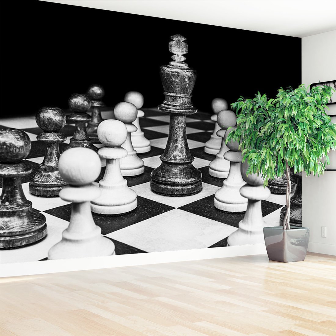 Nadaj swojemu wnętrzu unikalny charakter i głębię dzięki naszej fototapecie z motywem szachy, gra, figury. Ta imponująca dekoracja ścienna to połączenie nowoczesnego designu i zapierającego dech w piersiach motywu, które całkowicie odmieni Twoje pomieszczenie