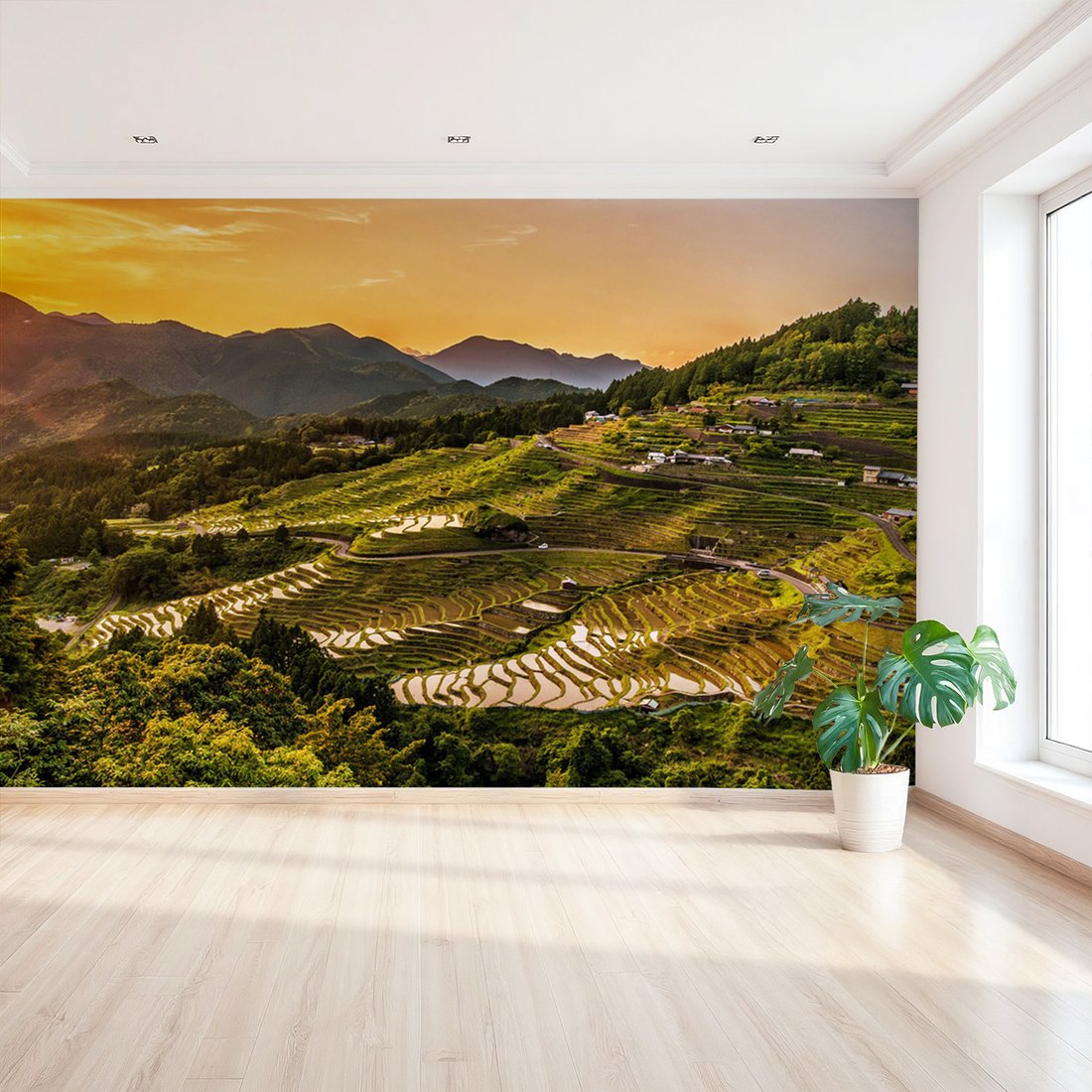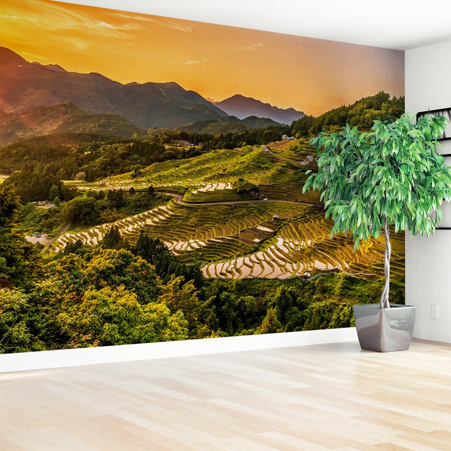 Nadaj swojemu wnętrzu unikalny charakter i głębię dzięki naszej fototapecie z motywem tarasy ryżowe, góry, krajobraz. Ta imponująca dekoracja ścienna to połączenie nowoczesnego designu i zapierającego dech w piersiach motywu, które całkowicie odmieni Twoje pomieszczenie