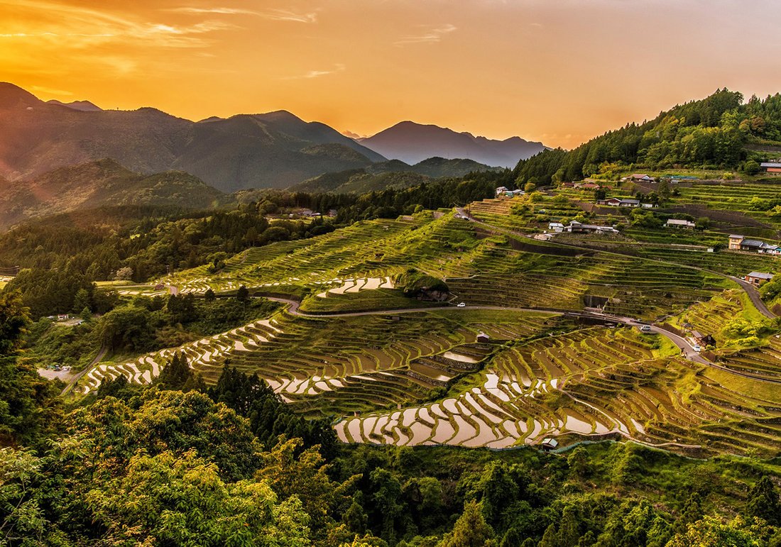 Fototapeta - tarasy ryżowe, góry, krajobraz
