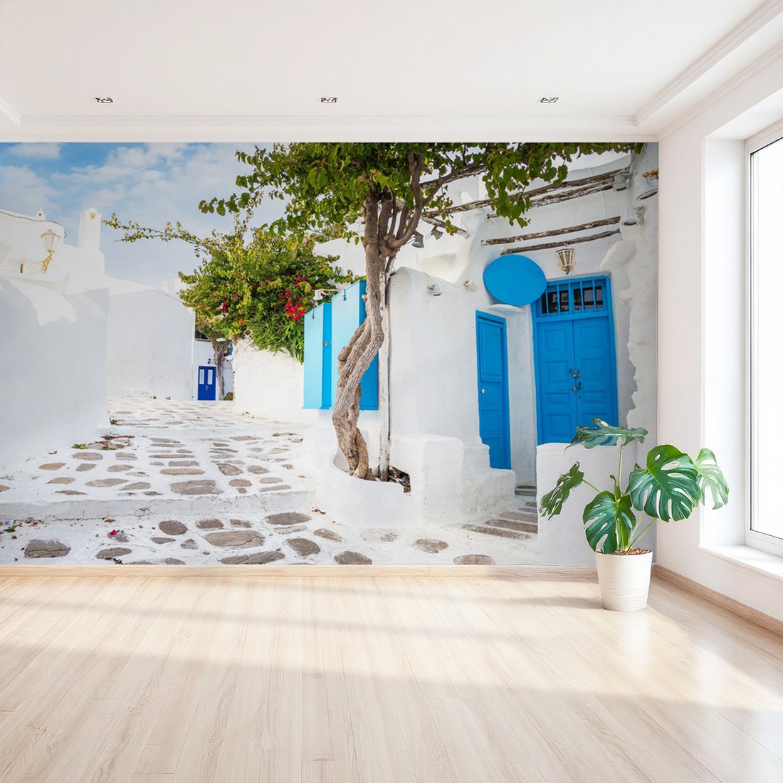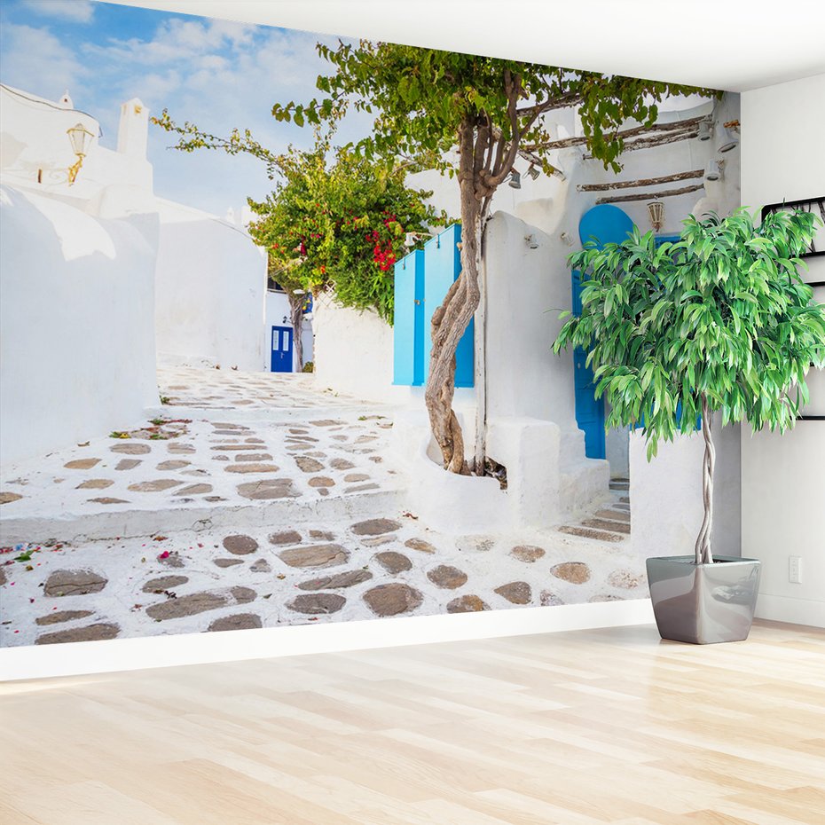Nadaj swojemu wnętrzu unikalny charakter i głębię dzięki naszej fototapecie z motywem uliczka, biały, niebieski. Ta imponująca dekoracja ścienna to połączenie nowoczesnego designu i zapierającego dech w piersiach motywu, które całkowicie odmieni Twoje pomieszczenie
