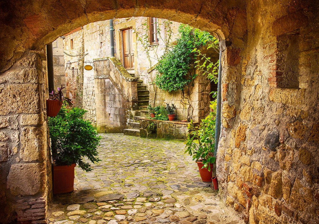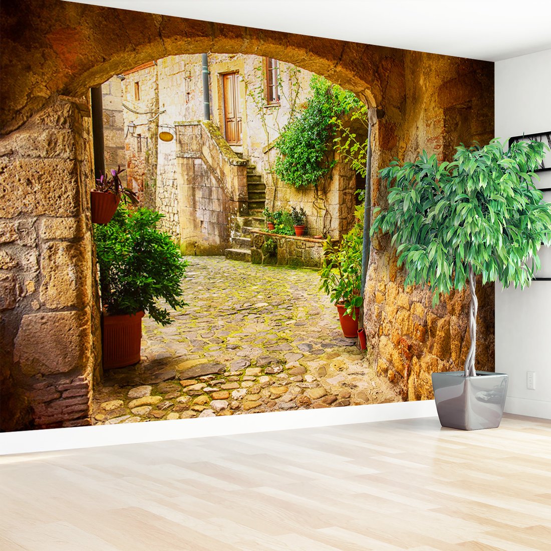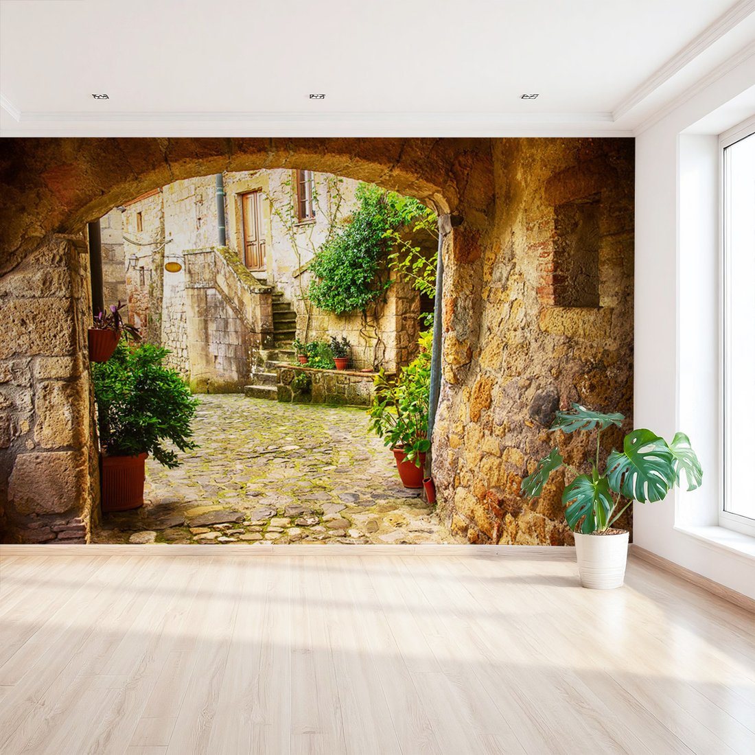 Nadaj swojemu wnętrzu unikalny charakter i głębię dzięki naszej fototapecie z motywem uliczka, kamień, rośliny. Ta imponująca dekoracja ścienna to połączenie nowoczesnego designu i zapierającego dech w piersiach motywu, które całkowicie odmieni Twoje pomieszczenie