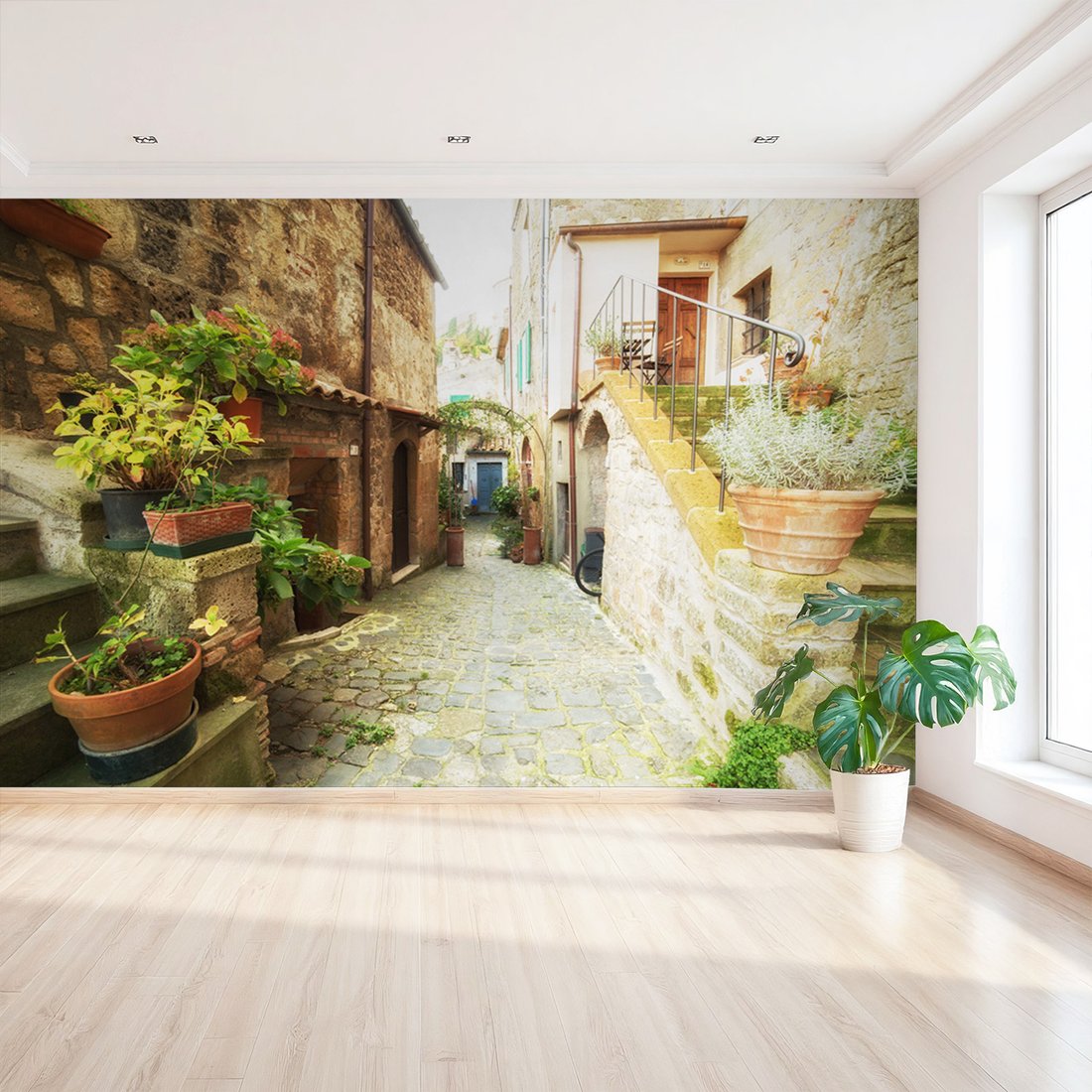 Nadaj swojemu wnętrzu unikalny charakter i głębię dzięki naszej fototapecie z motywem uliczka, kwiaty, kamień. Ta imponująca dekoracja ścienna to połączenie nowoczesnego designu i zapierającego dech w piersiach motywu, które całkowicie odmieni Twoje pomieszczenie