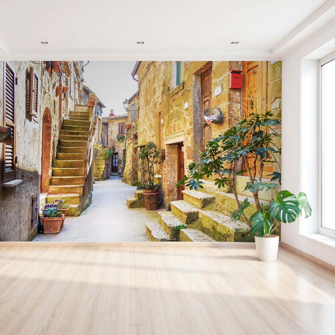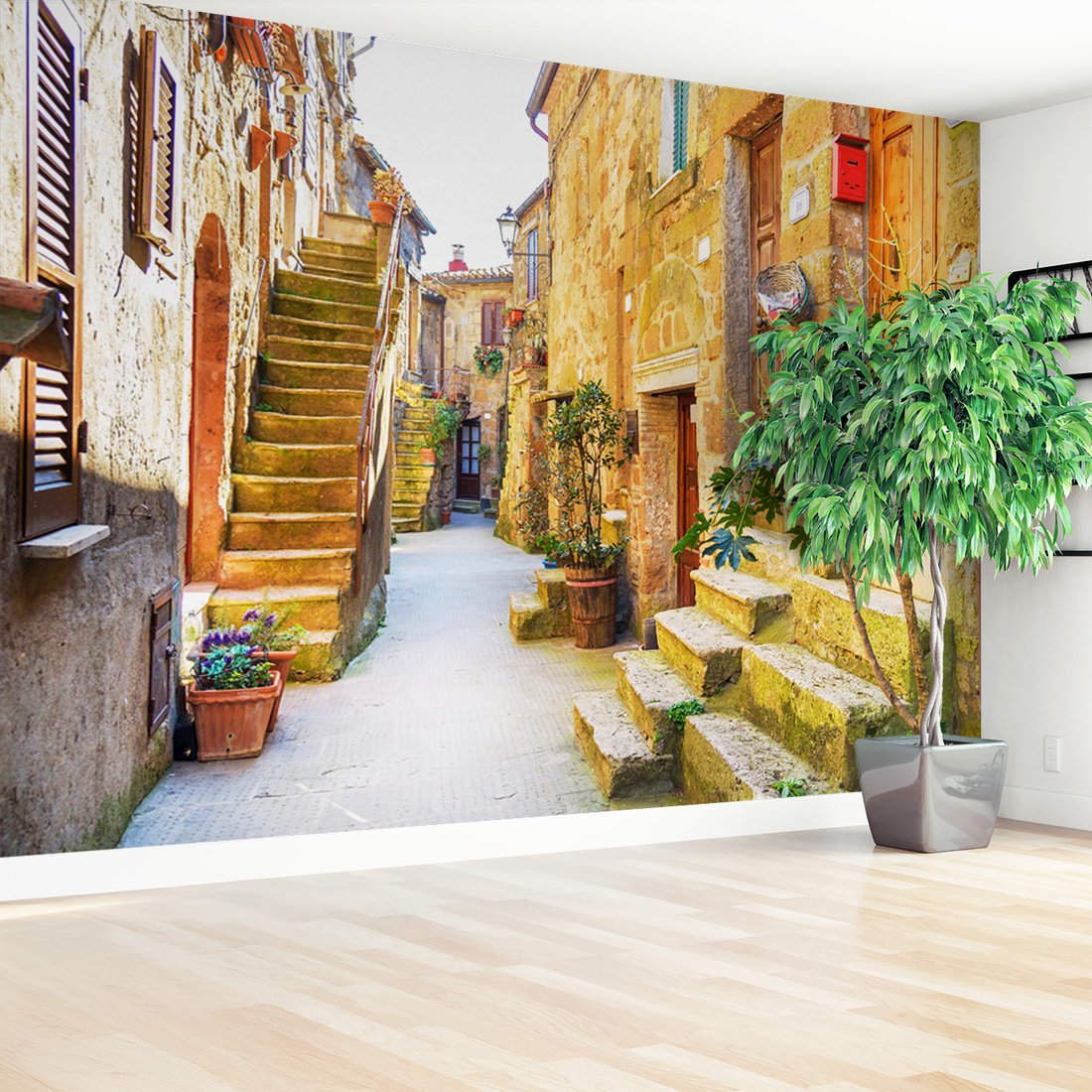 Nadaj swojemu wnętrzu unikalny charakter i głębię dzięki naszej fototapecie z motywem uliczka, miasto, schody. Ta imponująca dekoracja ścienna to połączenie nowoczesnego designu i zapierającego dech w piersiach motywu, które całkowicie odmieni Twoje pomieszczenie