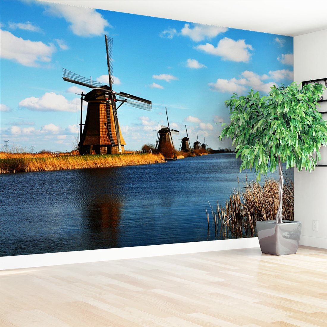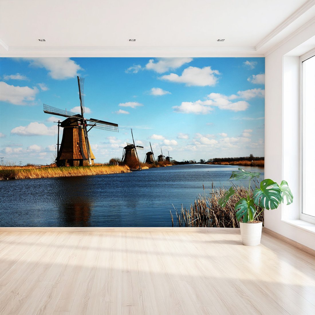 Nadaj swojemu wnętrzu unikalny charakter i głębię dzięki naszej fototapecie z motywem wiatraki, woda, niebo. Ta imponująca dekoracja ścienna to połączenie nowoczesnego designu i zapierającego dech w piersiach motywu, które całkowicie odmieni Twoje pomieszczenie