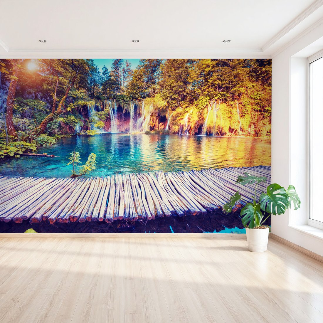 Nadaj swojemu wnętrzu unikalny charakter i głębię dzięki naszej fototapecie z motywem wodospad, jezioro, las. Ta imponująca dekoracja ścienna to połączenie nowoczesnego designu i zapierającego dech w piersiach motywu, które całkowicie odmieni Twoje pomieszczenie