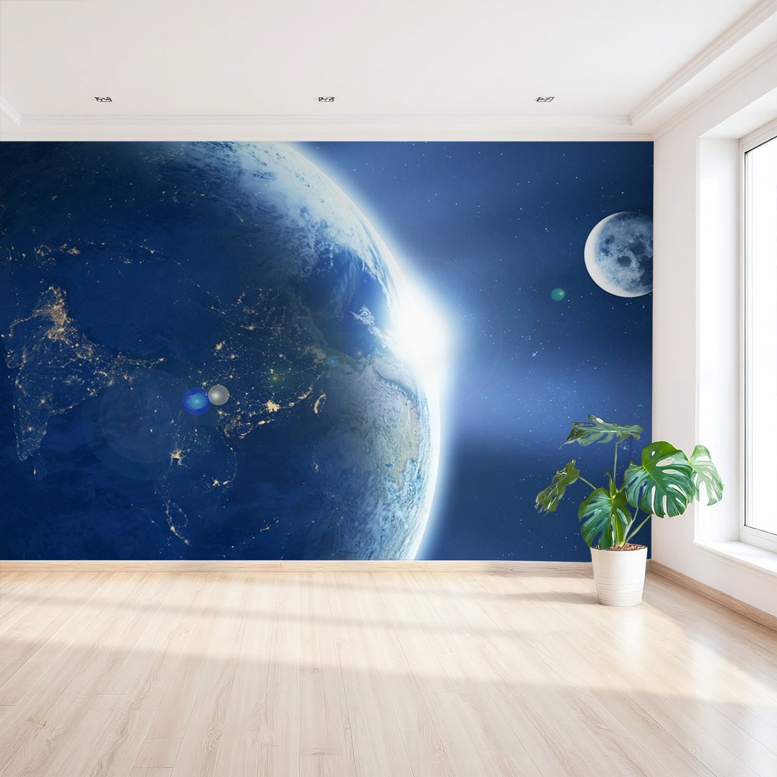 Nadaj swojemu wnętrzu unikalny charakter i głębię dzięki naszej fototapecie z motywem ziemia, kosmos, przestrzeń. Ta imponująca dekoracja ścienna to połączenie nowoczesnego designu i zapierającego dech w piersiach motywu, które całkowicie odmieni Twoje pomieszczenie