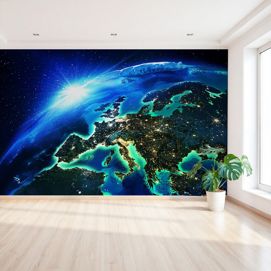 Nadaj swojemu wnętrzu unikalny charakter i głębię dzięki naszej fototapecie z motywem ziemia, kosmos, światło. Ta imponująca dekoracja ścienna to połączenie nowoczesnego designu i zapierającego dech w piersiach motywu, które całkowicie odmieni Twoje pomieszczenie