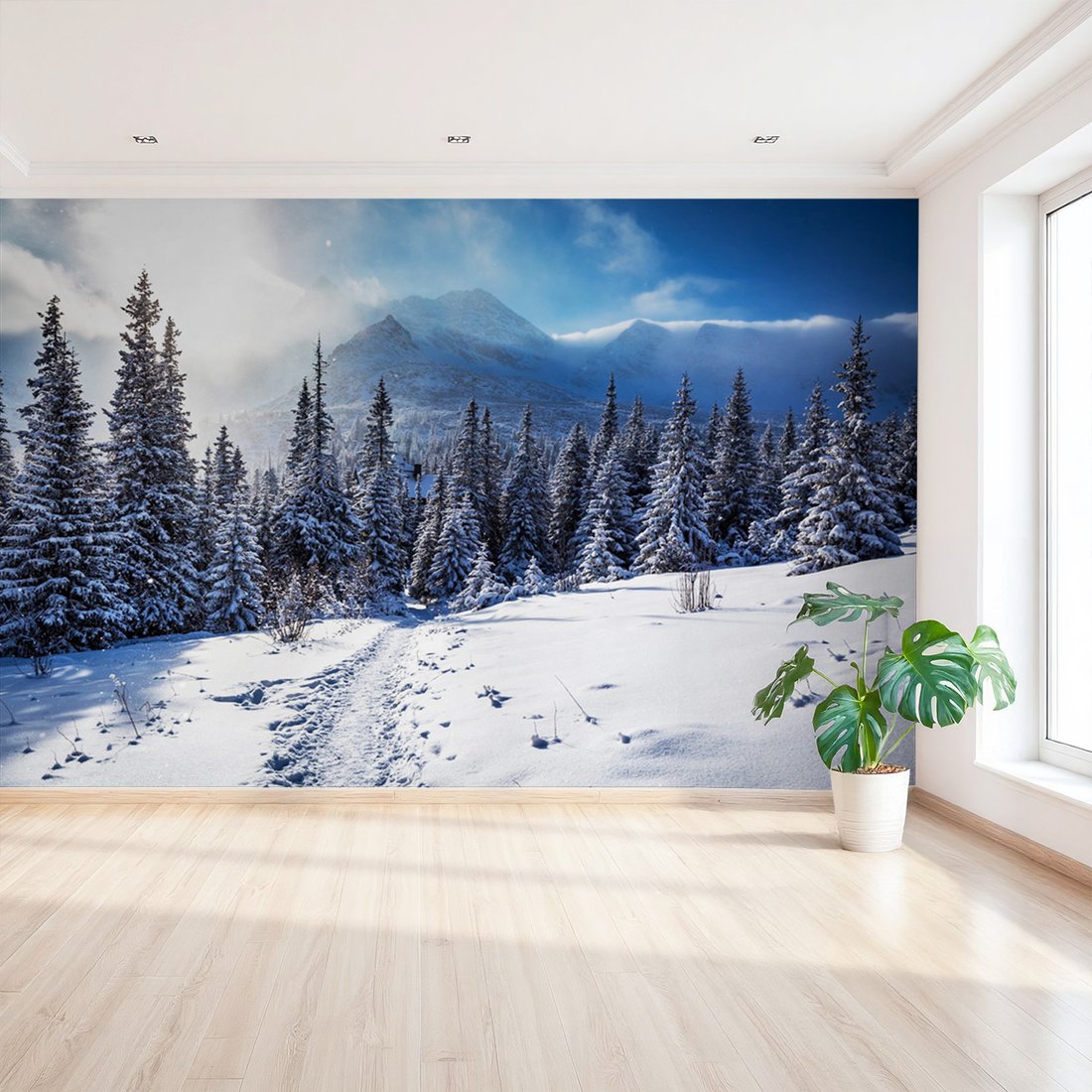 Nadaj swojemu wnętrzu unikalny charakter i głębię dzięki naszej fototapecie z motywem zima, śnieg, góry. Ta imponująca dekoracja ścienna to połączenie nowoczesnego designu i zapierającego dech w piersiach motywu, które całkowicie odmieni Twoje pomieszczenie