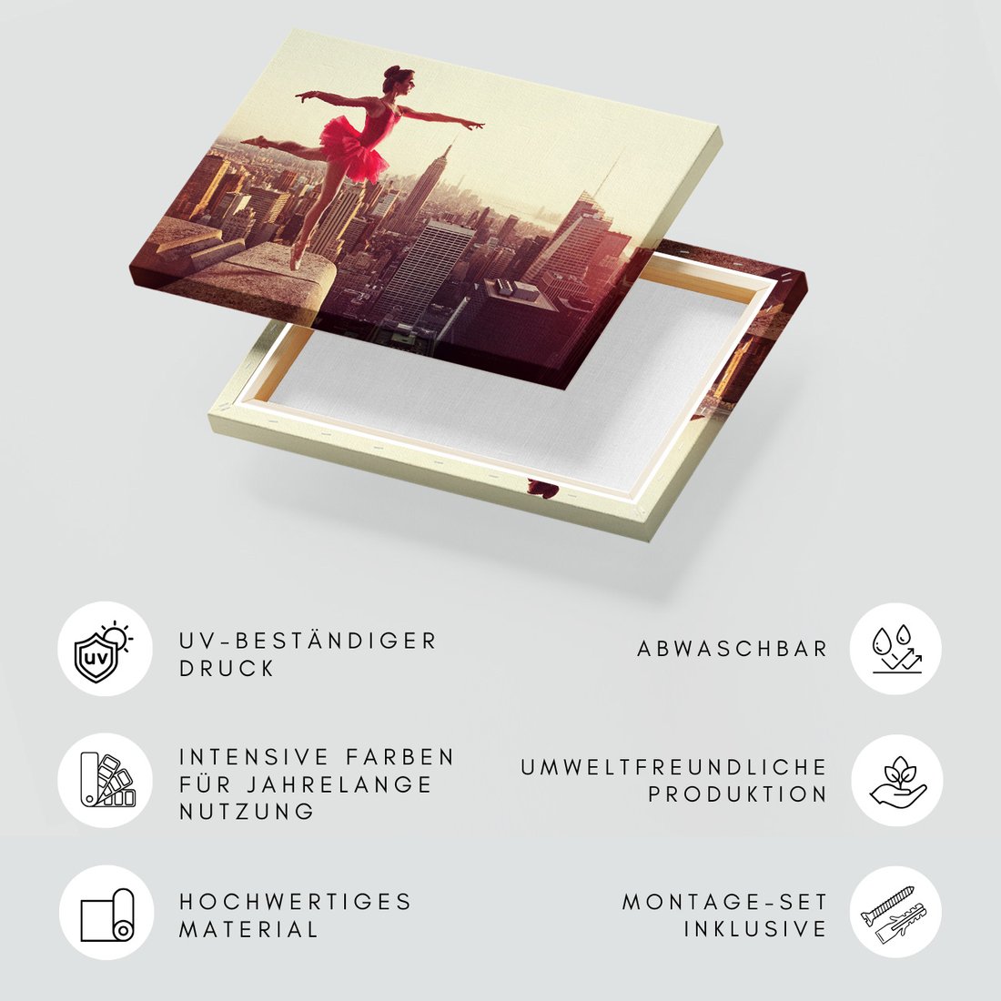 Obraz na płótnie z motywem baletnica, miasto, taniec to kwintesencja estetyki i trwałości. Dzięki łatwemu montażowi i uniwersalnemu wzornictwu, czyni go idealnym wyborem zarówno do codziennego użytku, jak i na wyrafinowany prezent.