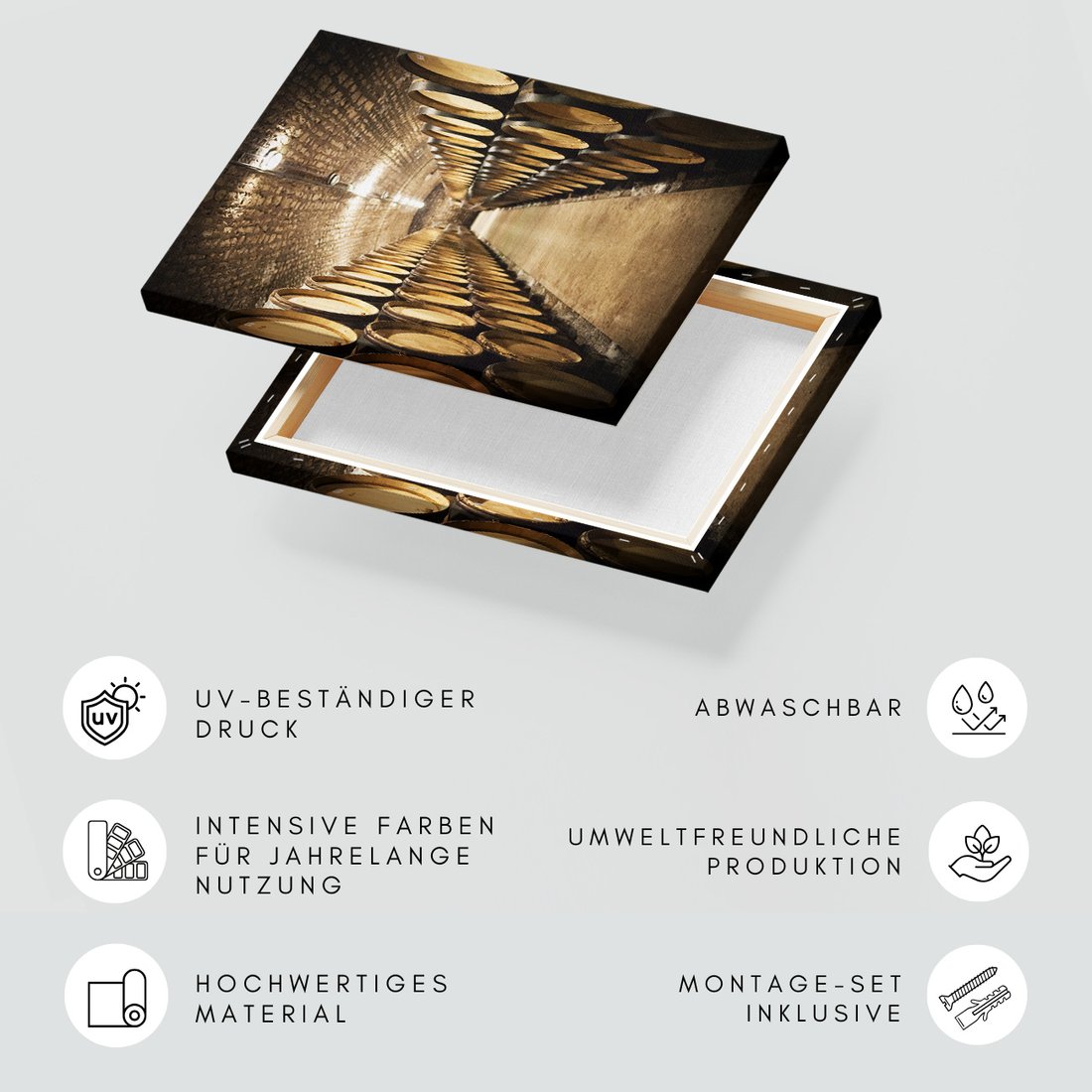 Obraz na płótnie z motywem beczki, piwnica, wino to kwintesencja estetyki i trwałości. Dzięki łatwemu montażowi i uniwersalnemu wzornictwu, czyni go idealnym wyborem zarówno do codziennego użytku, jak i na wyrafinowany prezent.