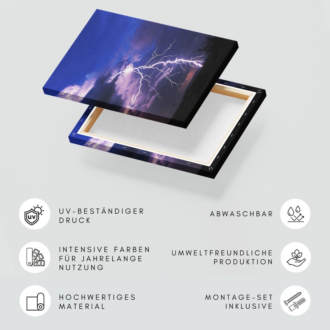 Obraz na płótnie z motywem burza, piorun, noc to kwintesencja estetyki i trwałości. Dzięki łatwemu montażowi i uniwersalnemu wzornictwu, czyni go idealnym wyborem zarówno do codziennego użytku, jak i na wyrafinowany prezent.