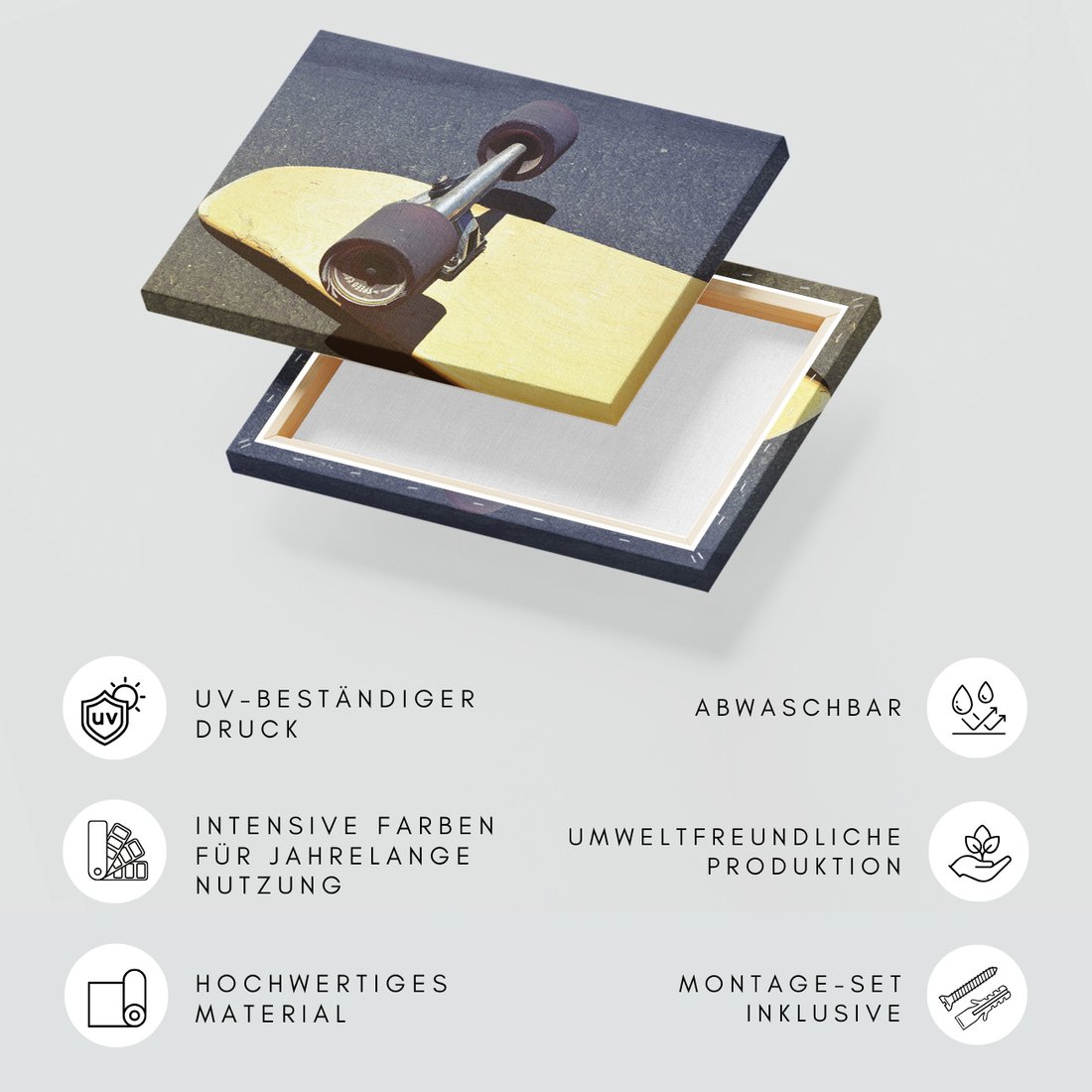 Obraz na płótnie z motywem deskorolka, kółka, sport to kwintesencja estetyki i trwałości. Dzięki łatwemu montażowi i uniwersalnemu wzornictwu, czyni go idealnym wyborem zarówno do codziennego użytku, jak i na wyrafinowany prezent.