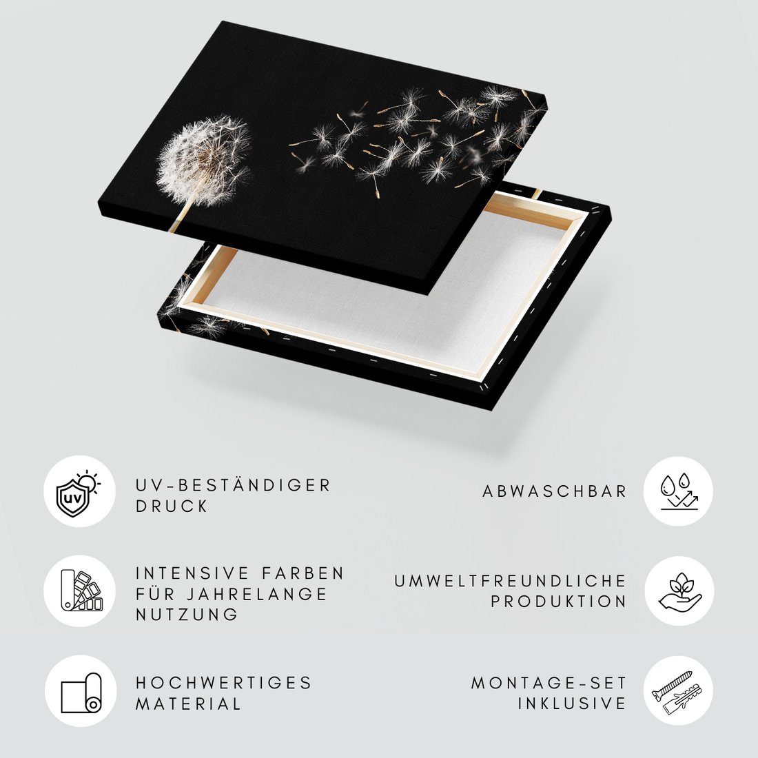 Obraz na płótnie z motywem Dmuchawiec, Nasiona, Delikatność to kwintesencja estetyki i trwałości. Dzięki łatwemu montażowi i uniwersalnemu wzornictwu, czyni go idealnym wyborem zarówno do codziennego użytku, jak i na wyrafinowany prezent.