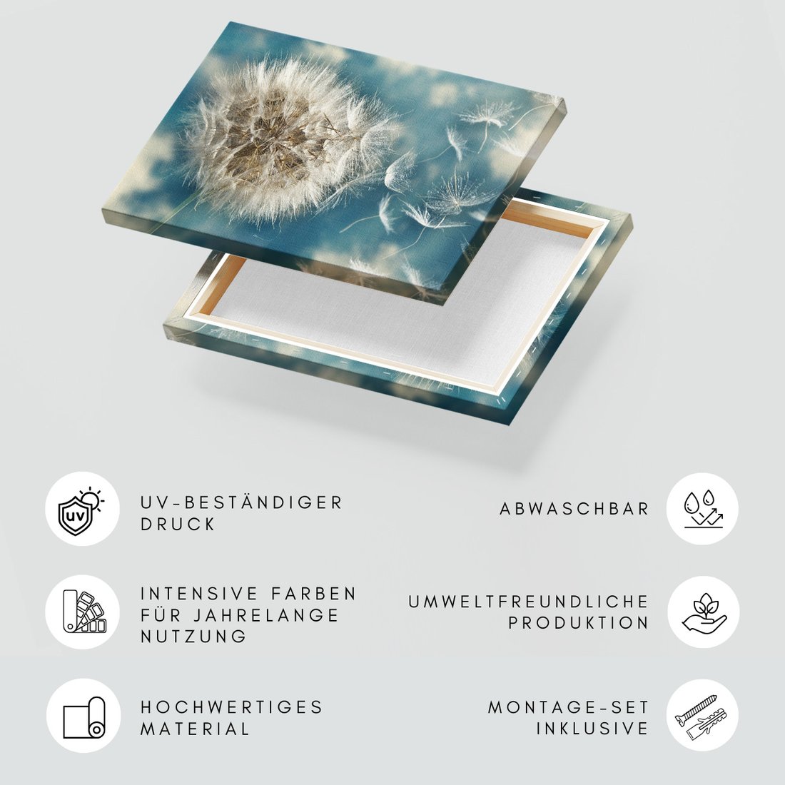 Obraz na płótnie z motywem Dmuchawiec, Nasiona, Natura to kwintesencja estetyki i trwałości. Dzięki łatwemu montażowi i uniwersalnemu wzornictwu, czyni go idealnym wyborem zarówno do codziennego użytku, jak i na wyrafinowany prezent.