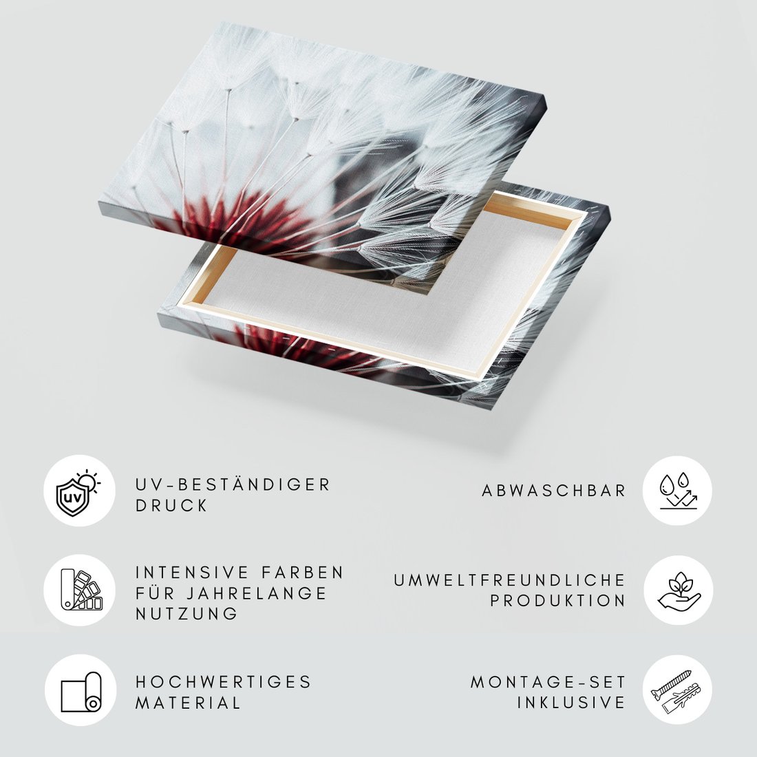 Obraz na płótnie z motywem dmuchawiec, natura, nasiona to kwintesencja estetyki i trwałości. Dzięki łatwemu montażowi i uniwersalnemu wzornictwu, czyni go idealnym wyborem zarówno do codziennego użytku, jak i na wyrafinowany prezent.