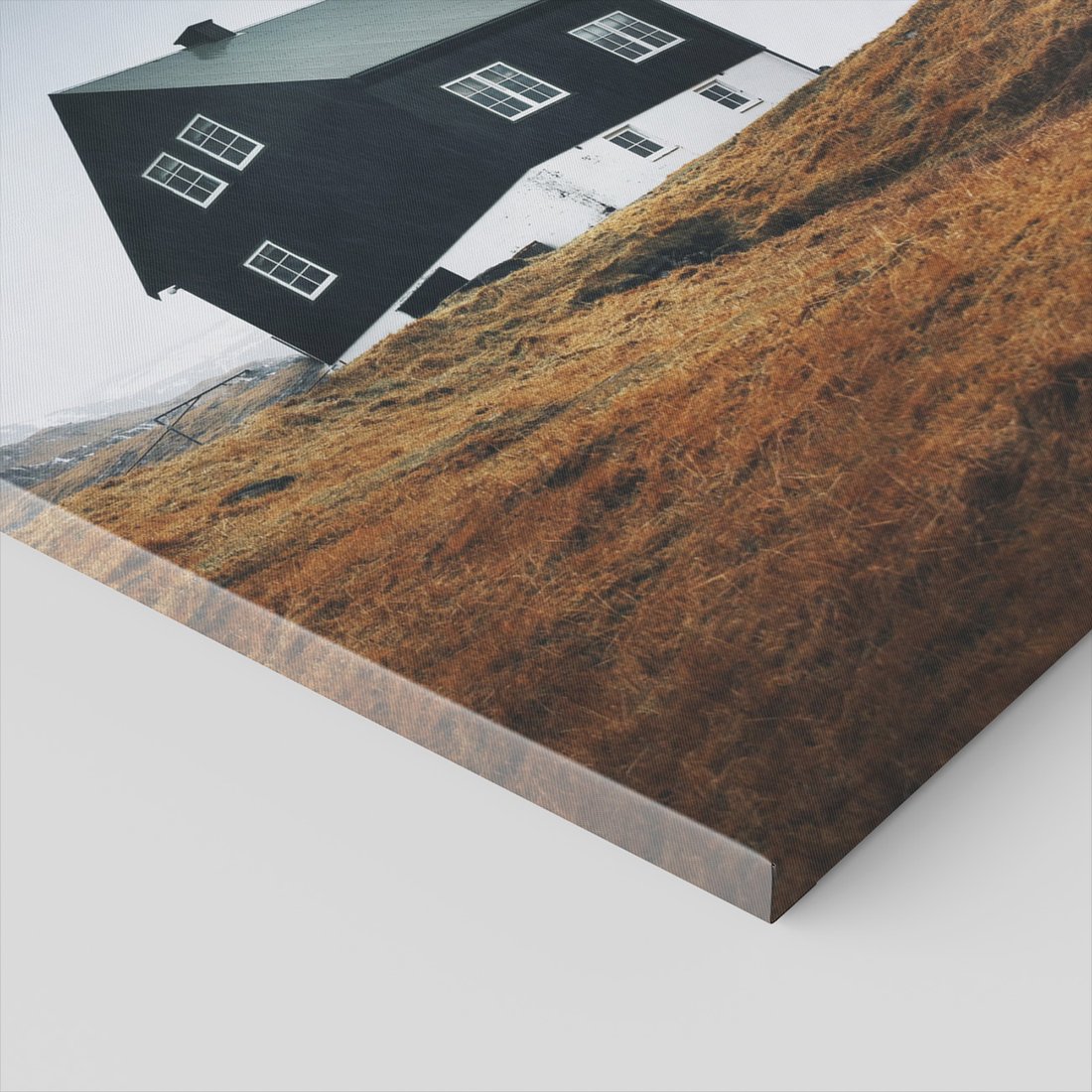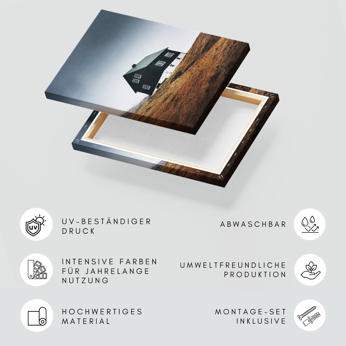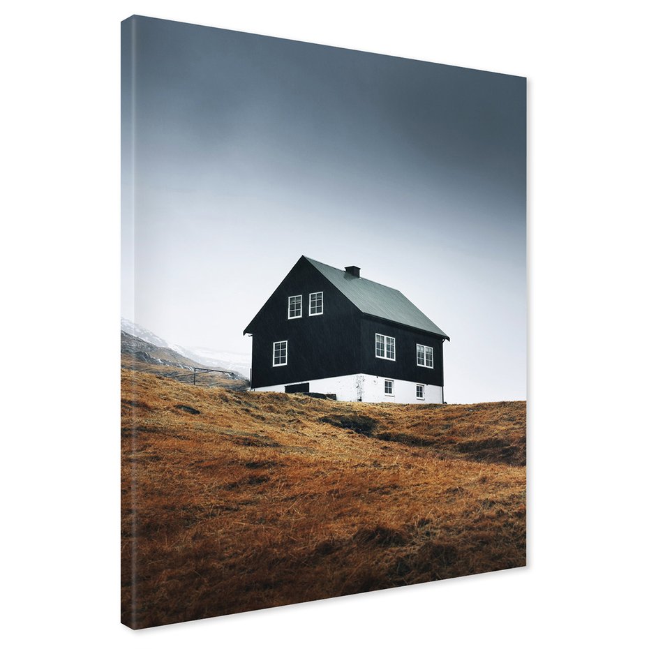 Obraz na płótnie z motywem dom, wzgórze, krajobraz to kwintesencja estetyki i trwałości. Dzięki łatwemu montażowi i uniwersalnemu wzornictwu, czyni go idealnym wyborem zarówno do codziennego użytku, jak i na wyrafinowany prezent.