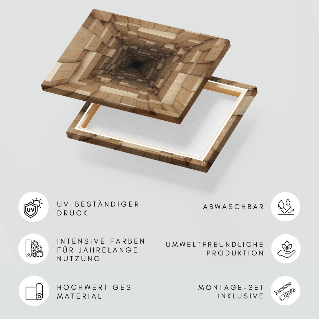 Obraz na płótnie z motywem drewno, tunel, abstrakcja to kwintesencja estetyki i trwałości. Dzięki łatwemu montażowi i uniwersalnemu wzornictwu, czyni go idealnym wyborem zarówno do codziennego użytku, jak i na wyrafinowany prezent.