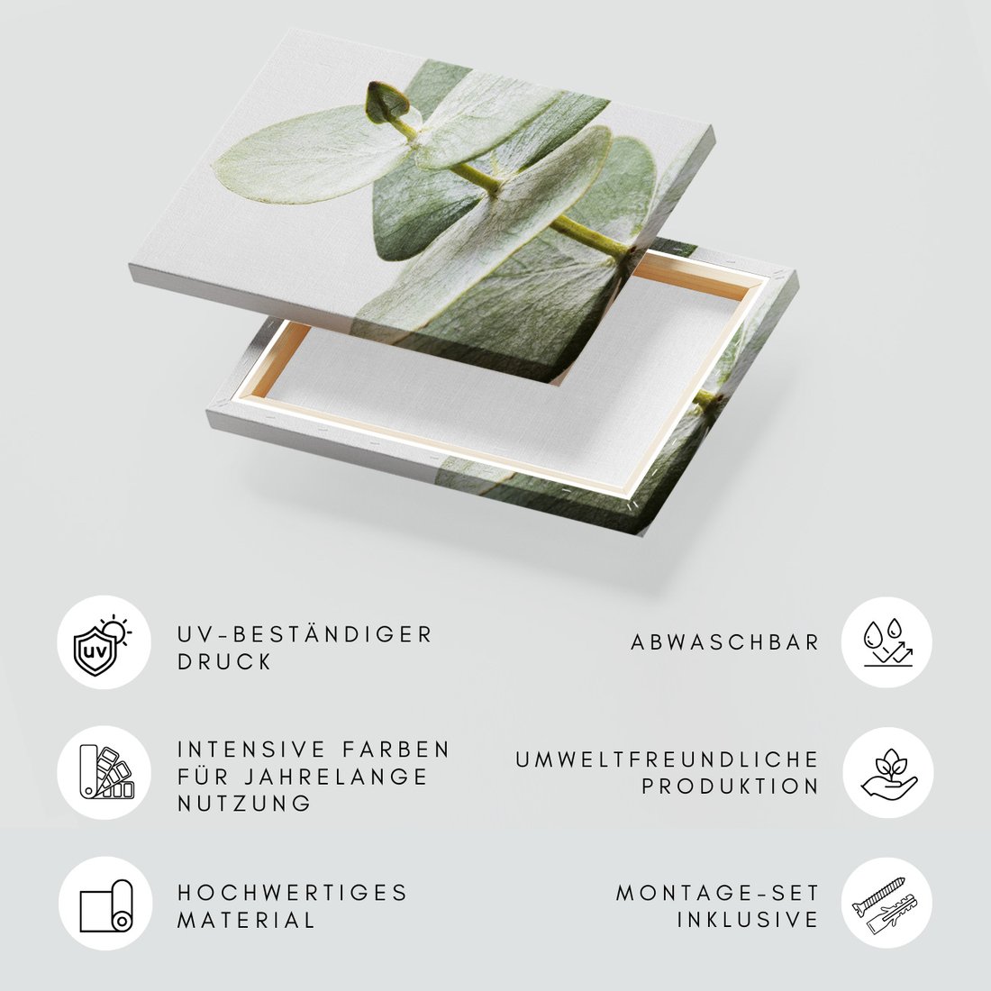 Obraz na płótnie z motywem eukaliptus, liście, gałązka to kwintesencja estetyki i trwałości. Dzięki łatwemu montażowi i uniwersalnemu wzornictwu, czyni go idealnym wyborem zarówno do codziennego użytku, jak i na wyrafinowany prezent.