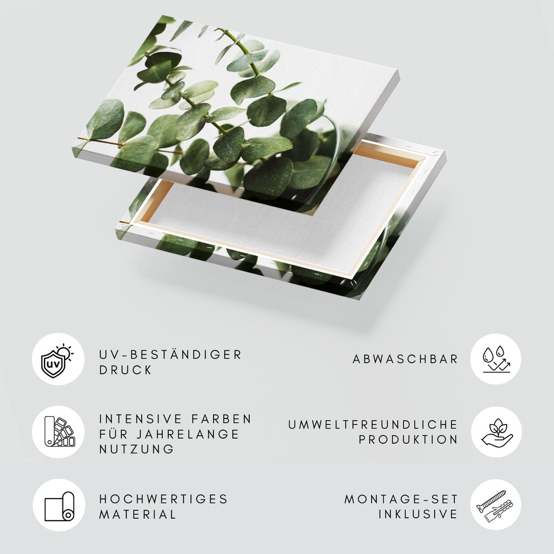 Obraz na płótnie z motywem eukaliptus, liście, roślina to kwintesencja estetyki i trwałości. Dzięki łatwemu montażowi i uniwersalnemu wzornictwu, czyni go idealnym wyborem zarówno do codziennego użytku, jak i na wyrafinowany prezent.