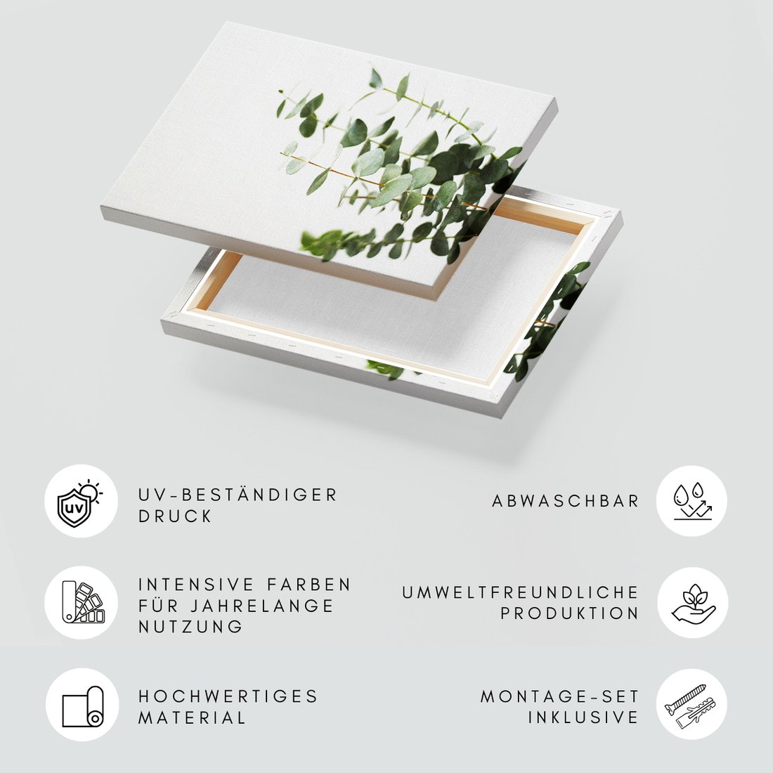 Obraz na płótnie z motywem eukaliptus, liście, roślina to kwintesencja estetyki i trwałości. Dzięki łatwemu montażowi i uniwersalnemu wzornictwu, czyni go idealnym wyborem zarówno do codziennego użytku, jak i na wyrafinowany prezent.