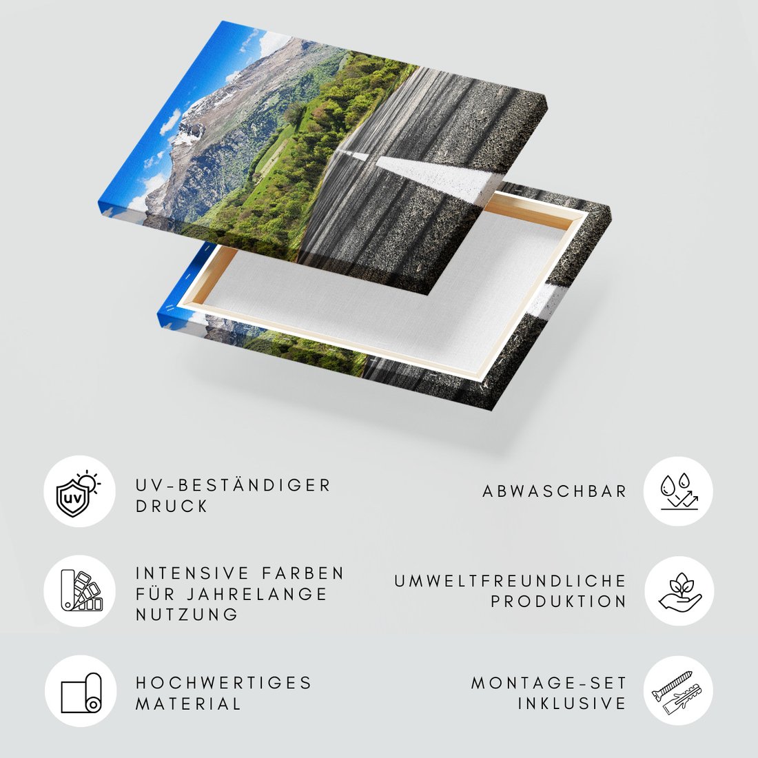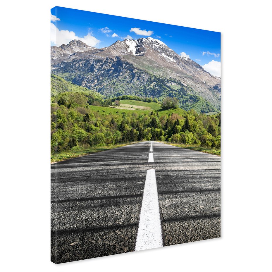 Obraz na płótnie z motywem góry, droga, krajobraz to kwintesencja estetyki i trwałości. Dzięki łatwemu montażowi i uniwersalnemu wzornictwu, czyni go idealnym wyborem zarówno do codziennego użytku, jak i na wyrafinowany prezent.