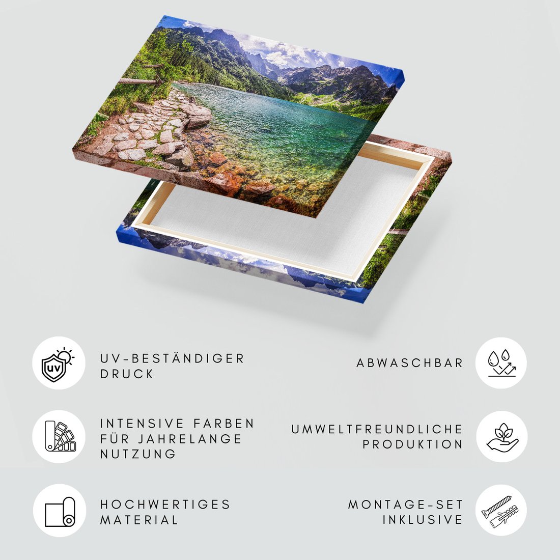 Obraz na płótnie z motywem góry, jezioro, krajobraz to kwintesencja estetyki i trwałości. Dzięki łatwemu montażowi i uniwersalnemu wzornictwu, czyni go idealnym wyborem zarówno do codziennego użytku, jak i na wyrafinowany prezent.