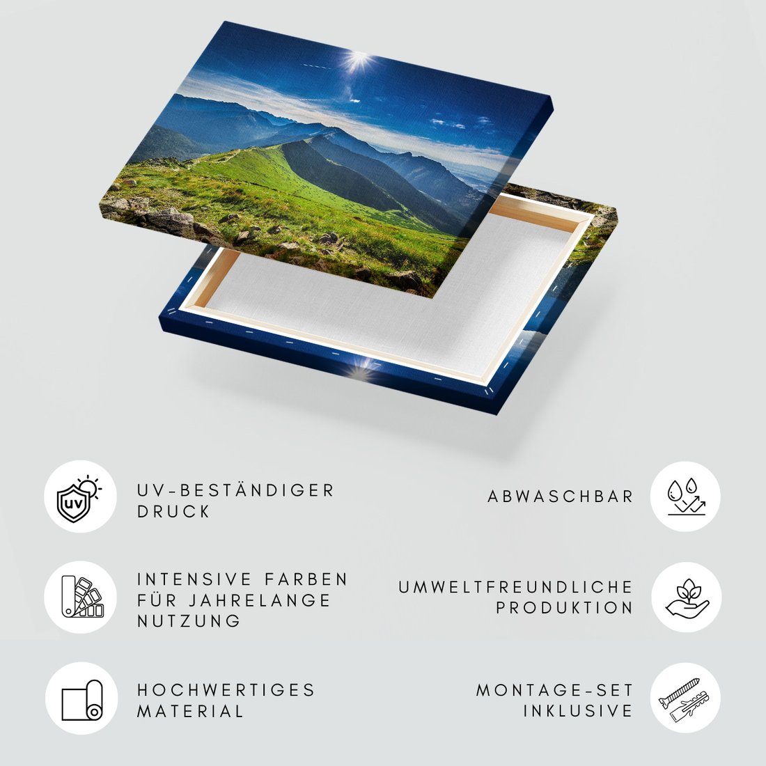 Obraz na płótnie z motywem góry, krajobraz, niebo to kwintesencja estetyki i trwałości. Dzięki łatwemu montażowi i uniwersalnemu wzornictwu, czyni go idealnym wyborem zarówno do codziennego użytku, jak i na wyrafinowany prezent.