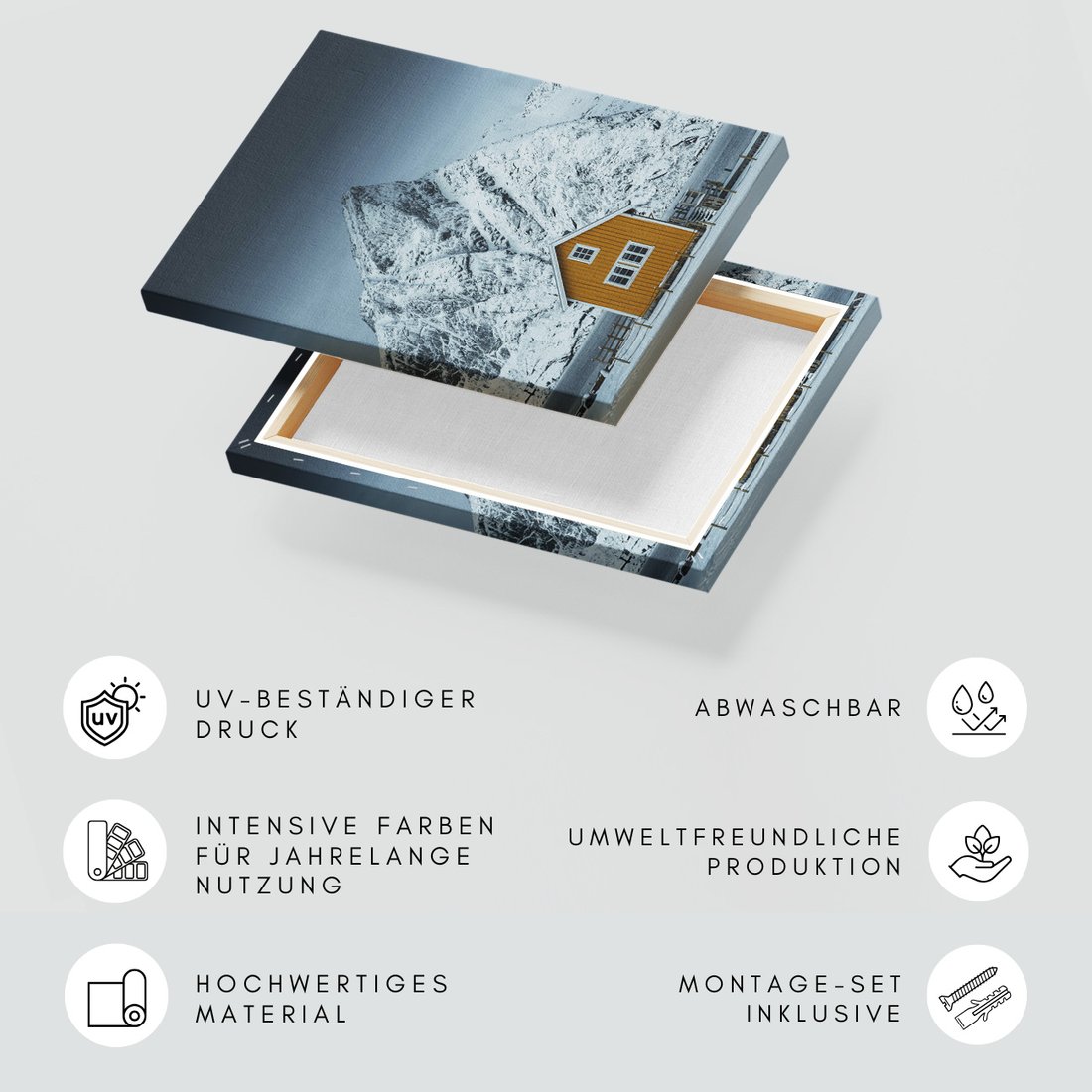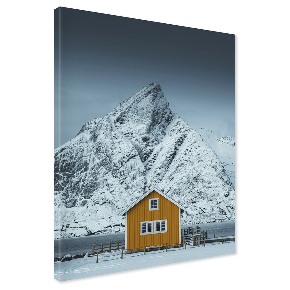 Obraz na płótnie z motywem góry, śnieg, dom to kwintesencja estetyki i trwałości. Dzięki łatwemu montażowi i uniwersalnemu wzornictwu, czyni go idealnym wyborem zarówno do codziennego użytku, jak i na wyrafinowany prezent.