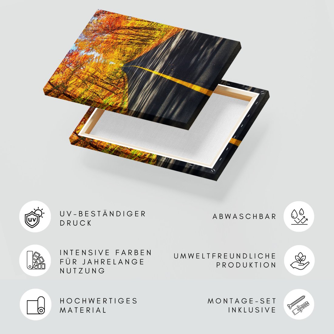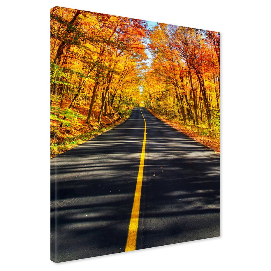 Obraz na płótnie z motywem jesień, droga, las to kwintesencja estetyki i trwałości. Dzięki łatwemu montażowi i uniwersalnemu wzornictwu, czyni go idealnym wyborem zarówno do codziennego użytku, jak i na wyrafinowany prezent.