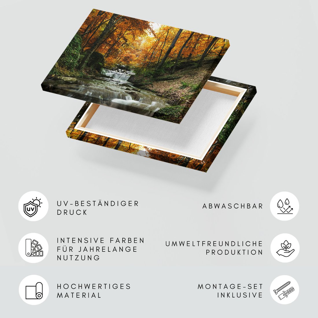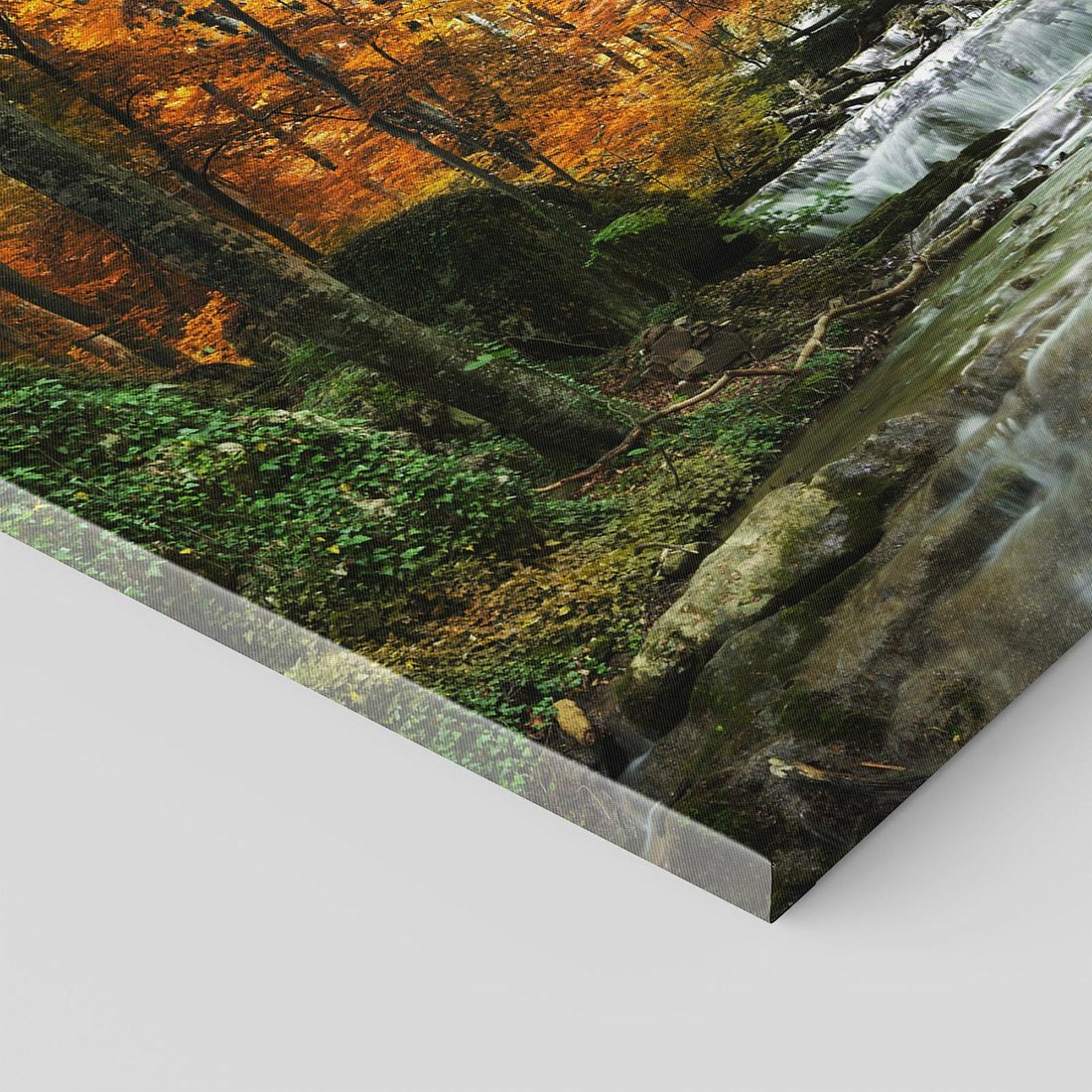 Obraz na płótnie z motywem jesień, wodospad, las to kwintesencja estetyki i trwałości. Dzięki łatwemu montażowi i uniwersalnemu wzornictwu, czyni go idealnym wyborem zarówno do codziennego użytku, jak i na wyrafinowany prezent.