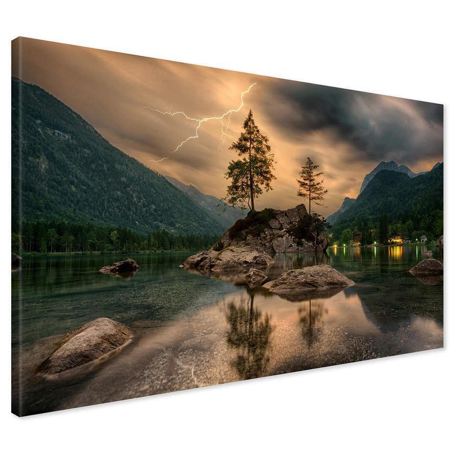 Obraz na płótnie - jezioro, góry, burza