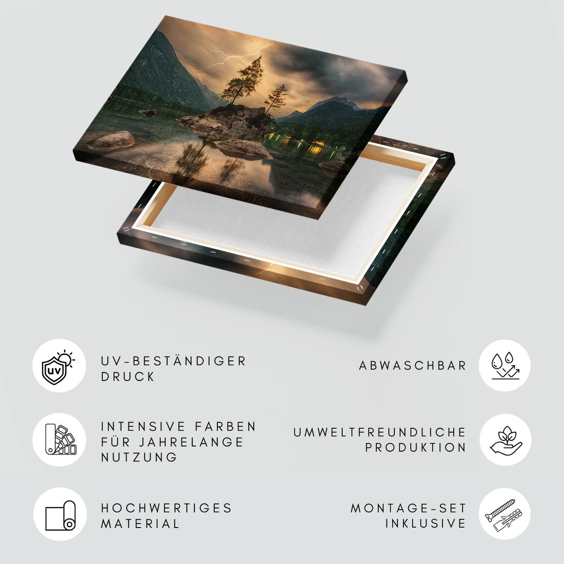 Obraz na płótnie z motywem jezioro, góry, burza to kwintesencja estetyki i trwałości. Dzięki łatwemu montażowi i uniwersalnemu wzornictwu, czyni go idealnym wyborem zarówno do codziennego użytku, jak i na wyrafinowany prezent.