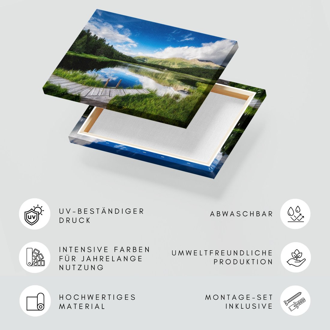 Obraz na płótnie z motywem jezioro, góry, lasy to kwintesencja estetyki i trwałości. Dzięki łatwemu montażowi i uniwersalnemu wzornictwu, czyni go idealnym wyborem zarówno do codziennego użytku, jak i na wyrafinowany prezent.