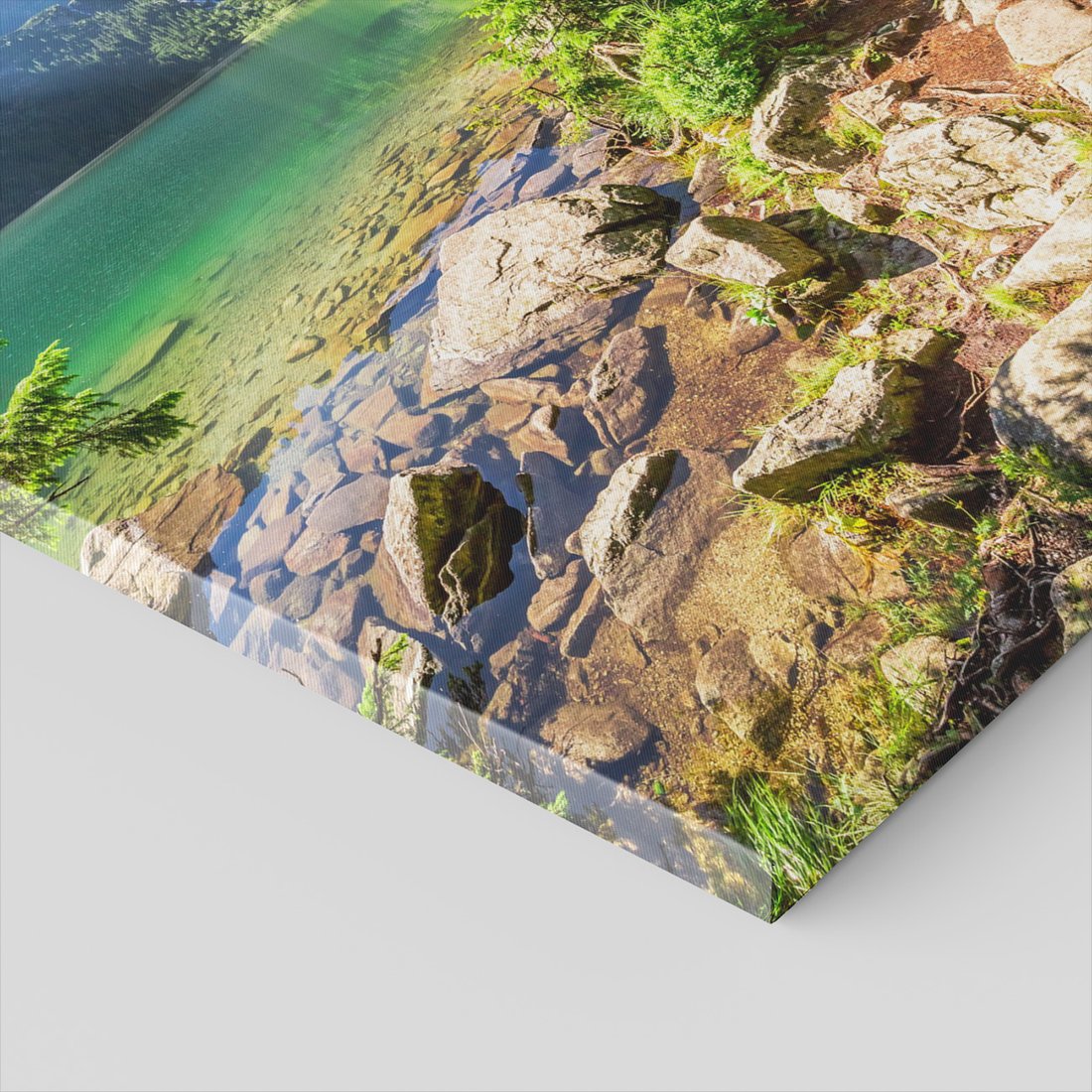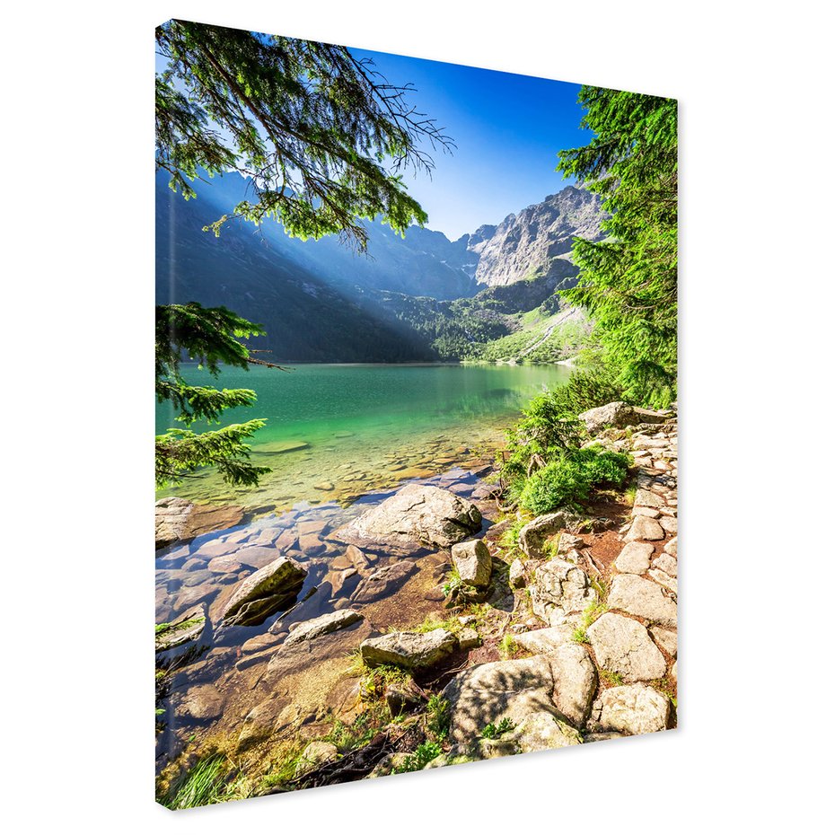 Obraz na płótnie z motywem jezioro, góry, lasy to kwintesencja estetyki i trwałości. Dzięki łatwemu montażowi i uniwersalnemu wzornictwu, czyni go idealnym wyborem zarówno do codziennego użytku, jak i na wyrafinowany prezent.