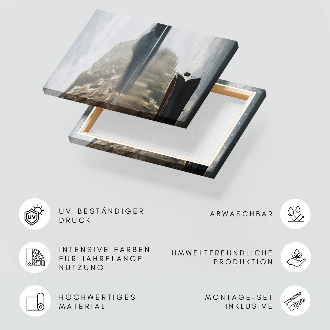 Obraz na płótnie z motywem jezioro, góry, łódka to kwintesencja estetyki i trwałości. Dzięki łatwemu montażowi i uniwersalnemu wzornictwu, czyni go idealnym wyborem zarówno do codziennego użytku, jak i na wyrafinowany prezent.