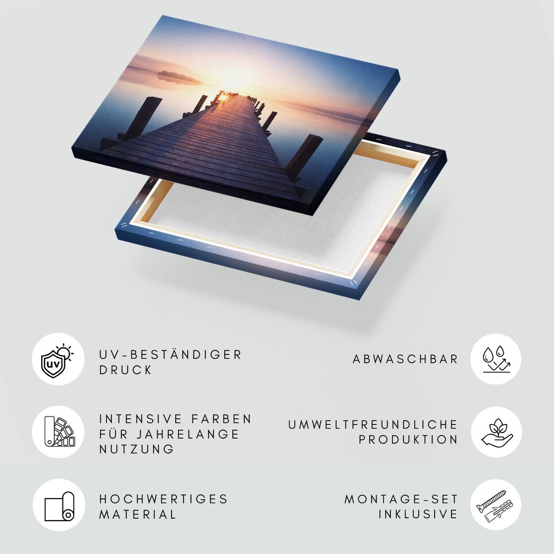 Obraz na płótnie z motywem jezioro, most, zachód słońca to kwintesencja estetyki i trwałości. Dzięki łatwemu montażowi i uniwersalnemu wzornictwu, czyni go idealnym wyborem zarówno do codziennego użytku, jak i na wyrafinowany prezent.