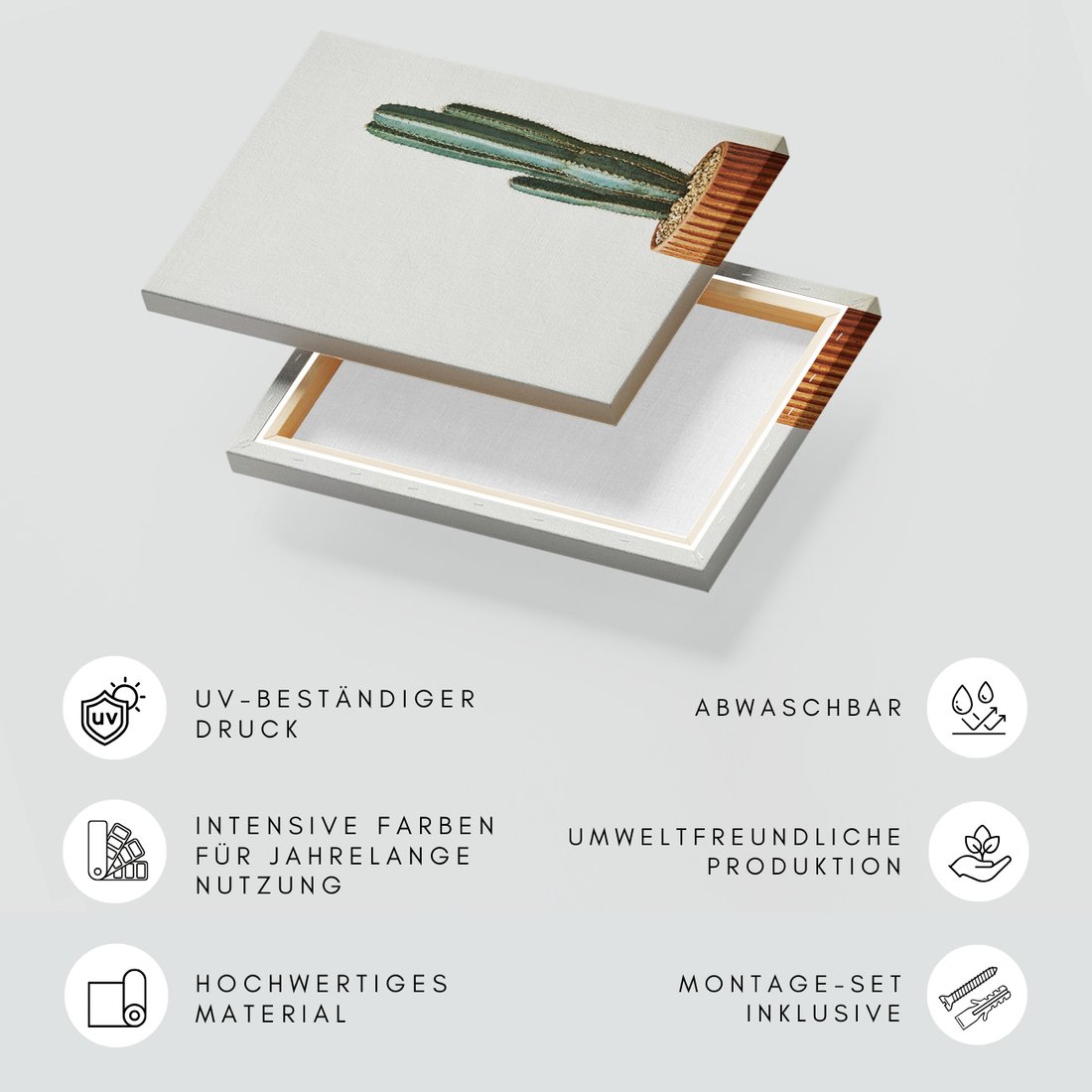 Obraz na płótnie z motywem kaktus, roślina, doniczka to kwintesencja estetyki i trwałości. Dzięki łatwemu montażowi i uniwersalnemu wzornictwu, czyni go idealnym wyborem zarówno do codziennego użytku, jak i na wyrafinowany prezent.
